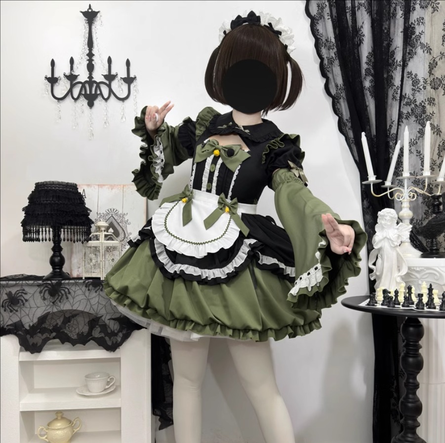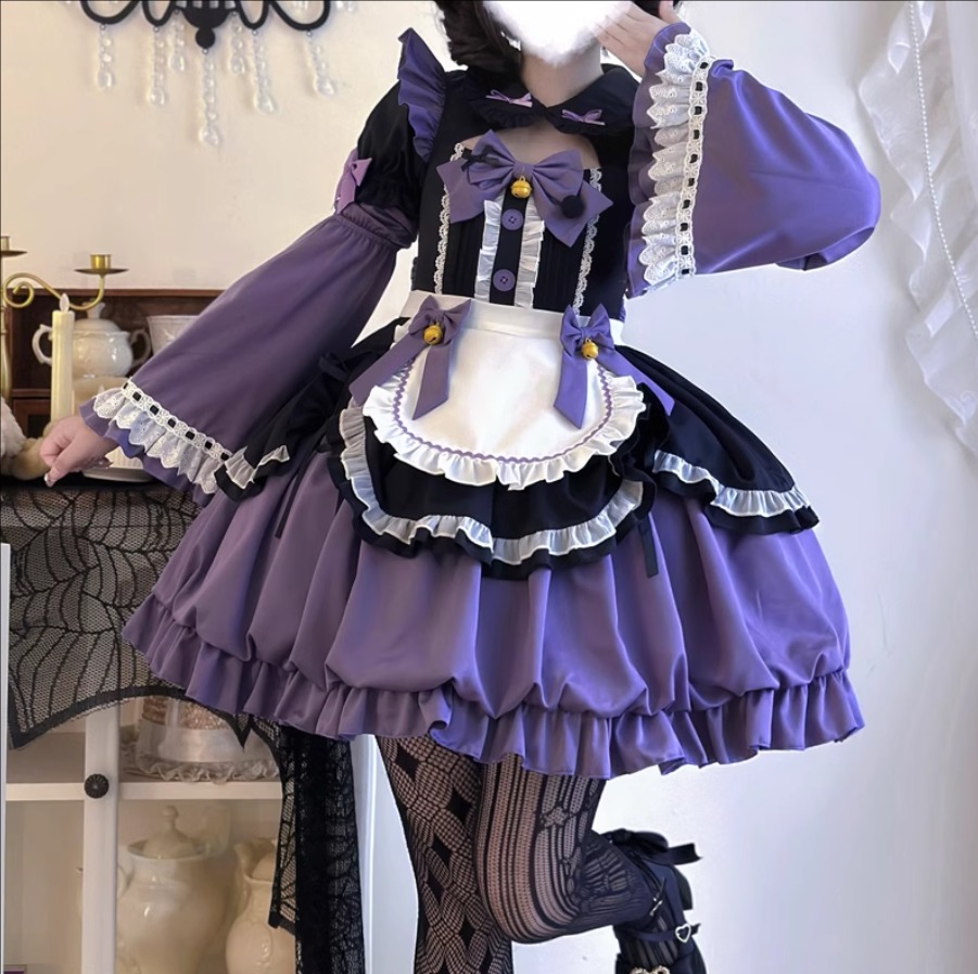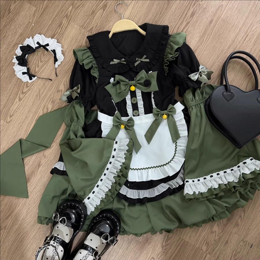 可愛いメイド服 半袖ワンピース ロリー ホビー 通販 ピンクxブルー ホワイトxブラック パープルxブラック ピンクxブラック グリーンxブラック S M L