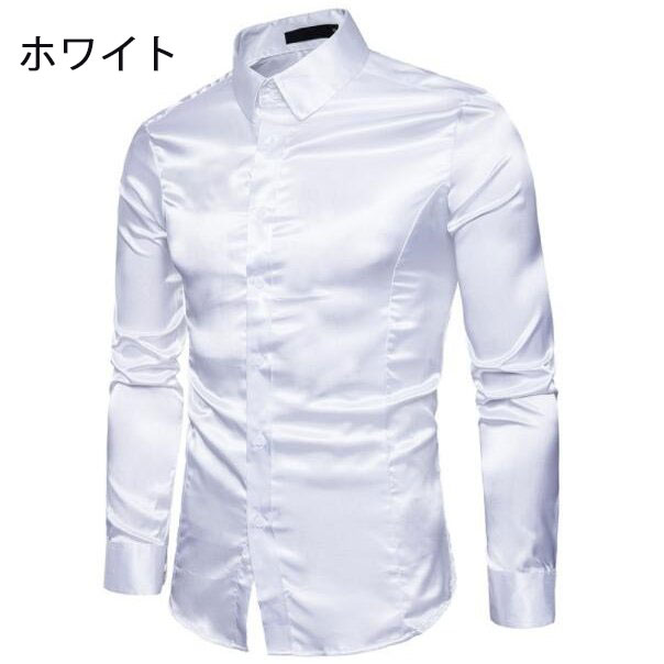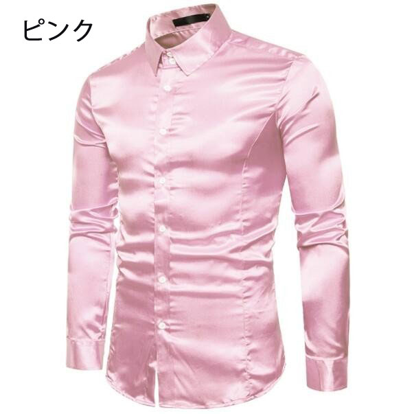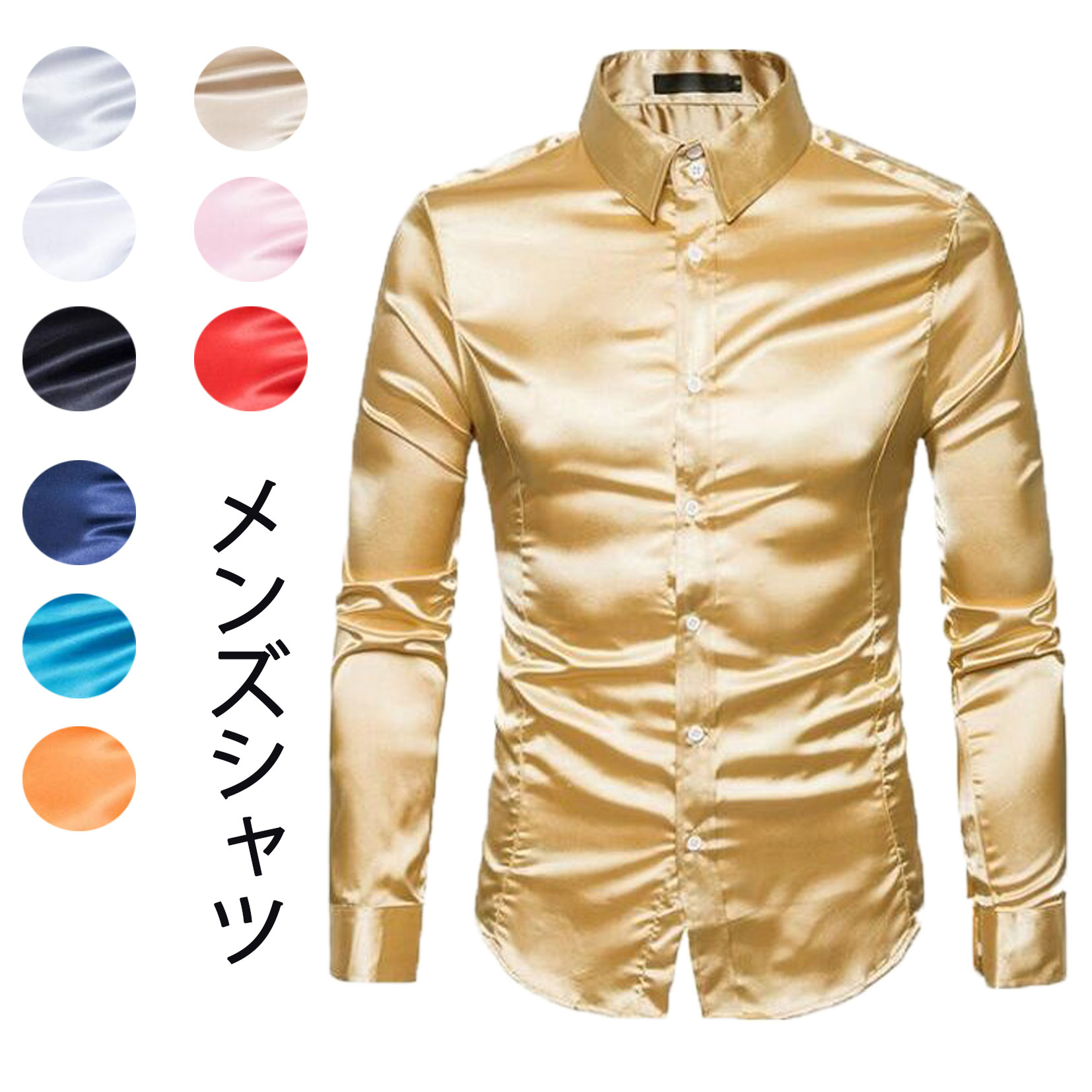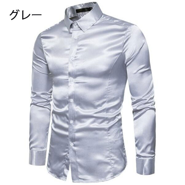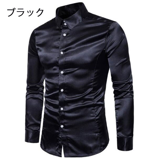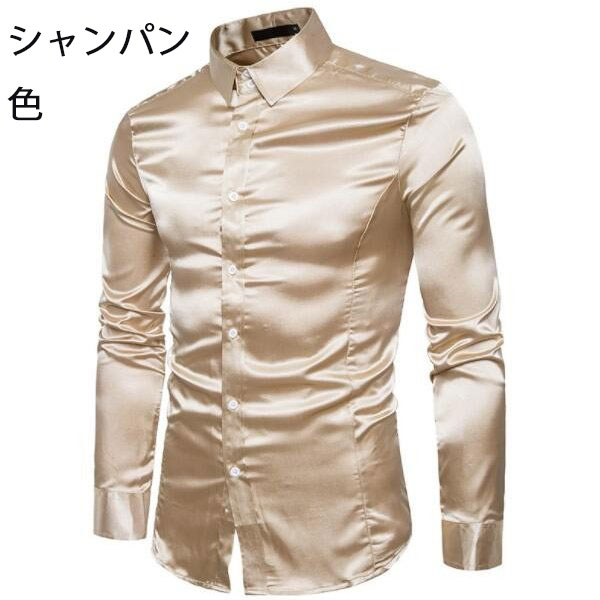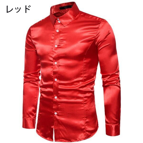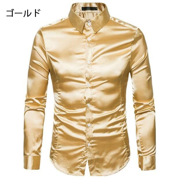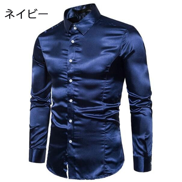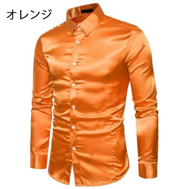 長袖シャツ サテンシャツ メンズシャツ メンズファッション 新作 ゴールド ブラック レッド ホワイト グレー ネイビー ブルー オレンジ ピンク シャンパン色 S M L XL XXL