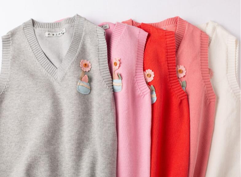 女の子ニットベスト 子供ジレ 可愛い子 キッズ ベビー マタニティ 続々登場 ホワイト グレー ピンク ダークピンク レッド(オレンジ系) 120cm 130cm 140cm 150cm 160cm