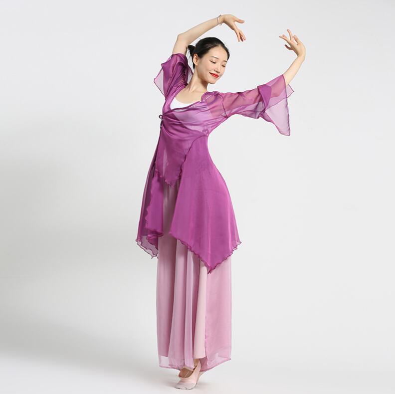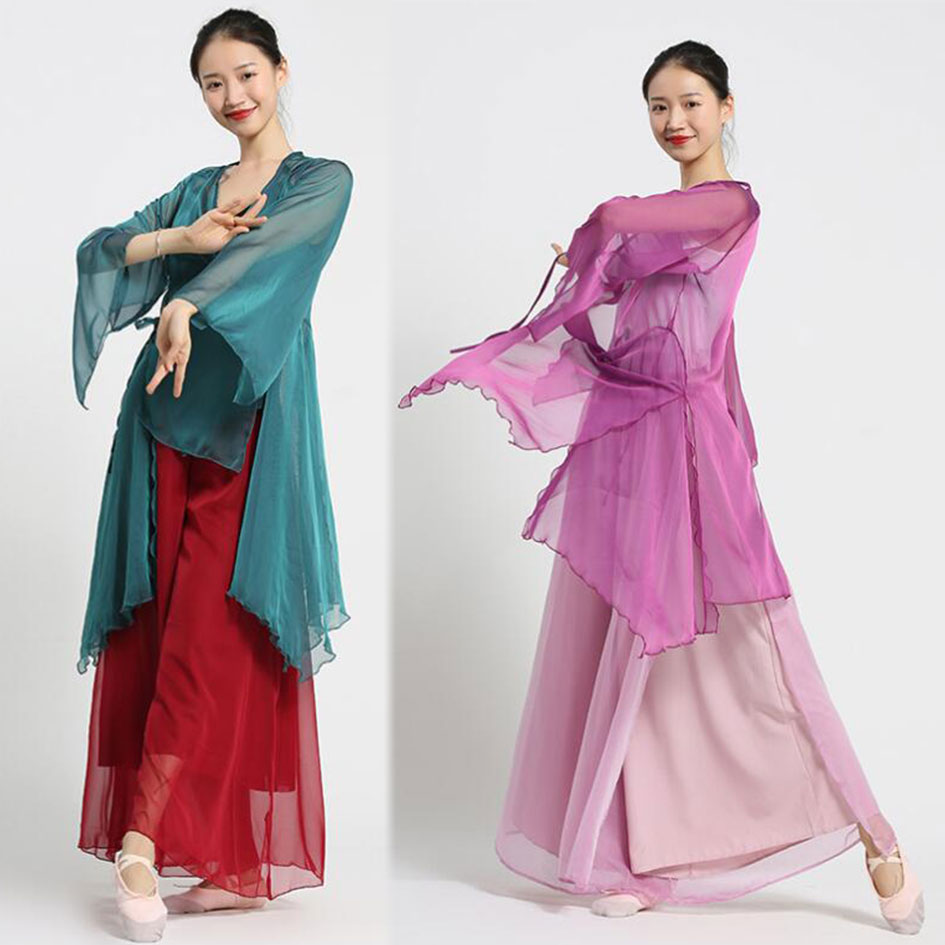 透け感カーディガン 古典ダンスウェア トップス/グリーン トップス/パープル S M L XL