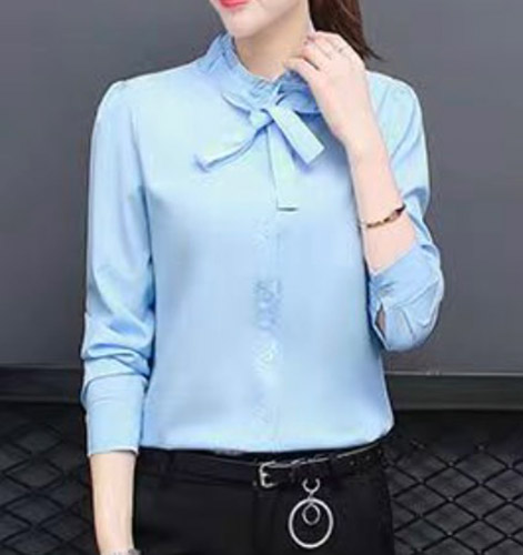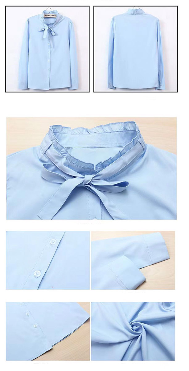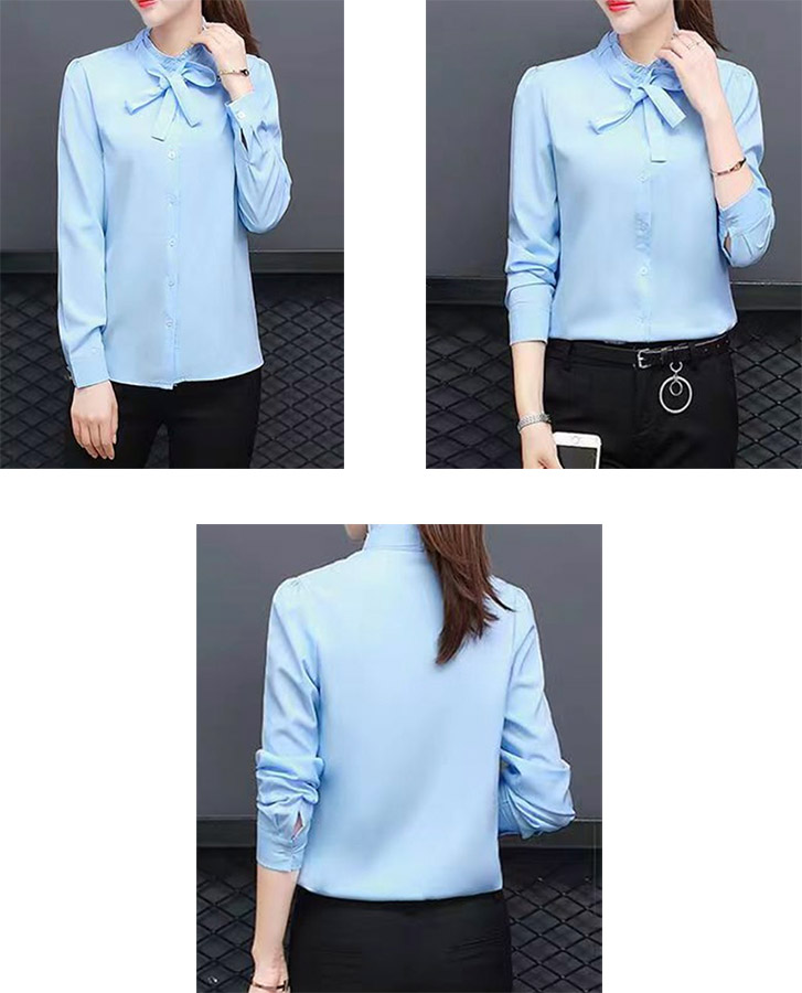 レディース トップス ボウタイ ブラウ トップス シャツ ブラウス 続々登場 ホワイト【白】 ブルー【青】 M L XL XXL