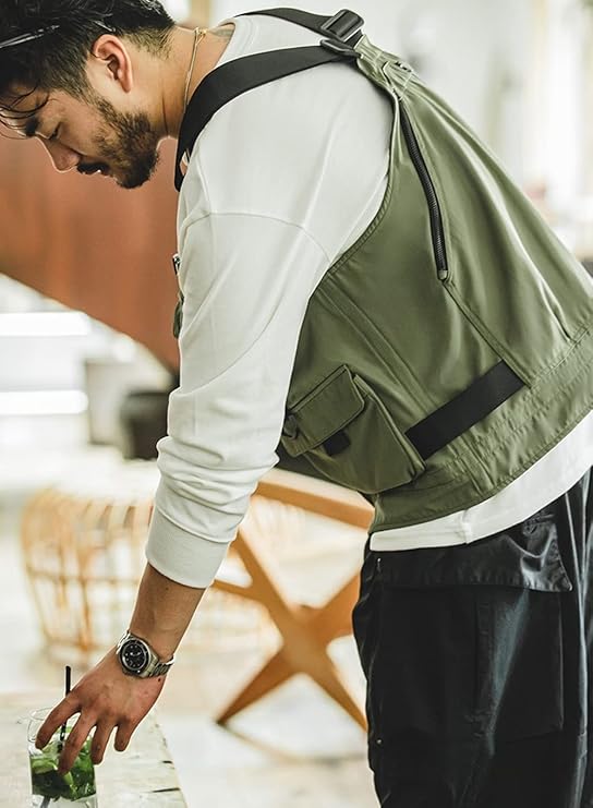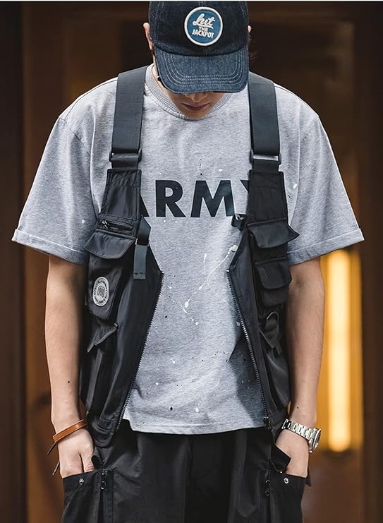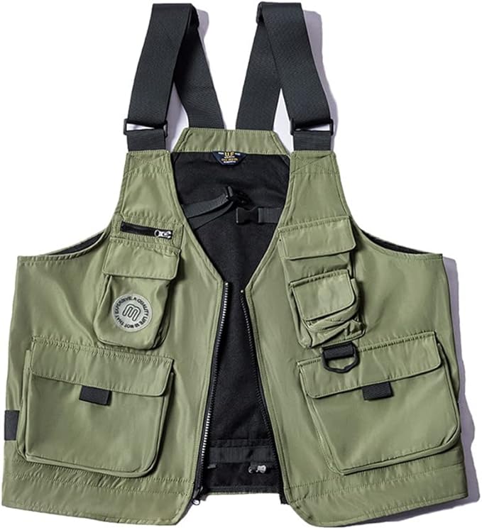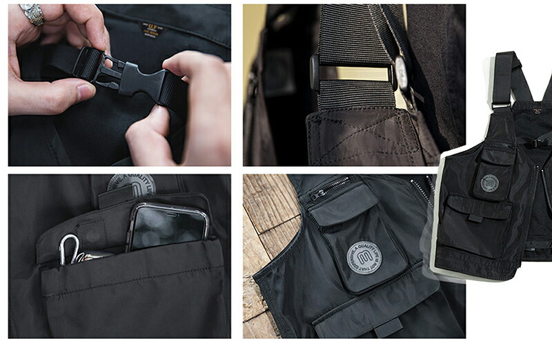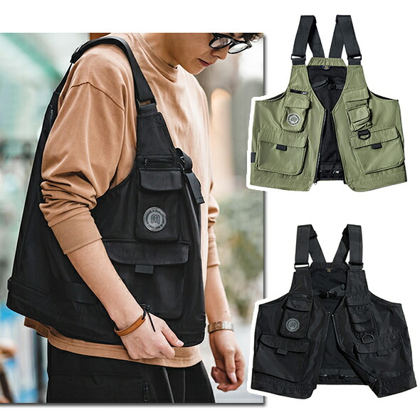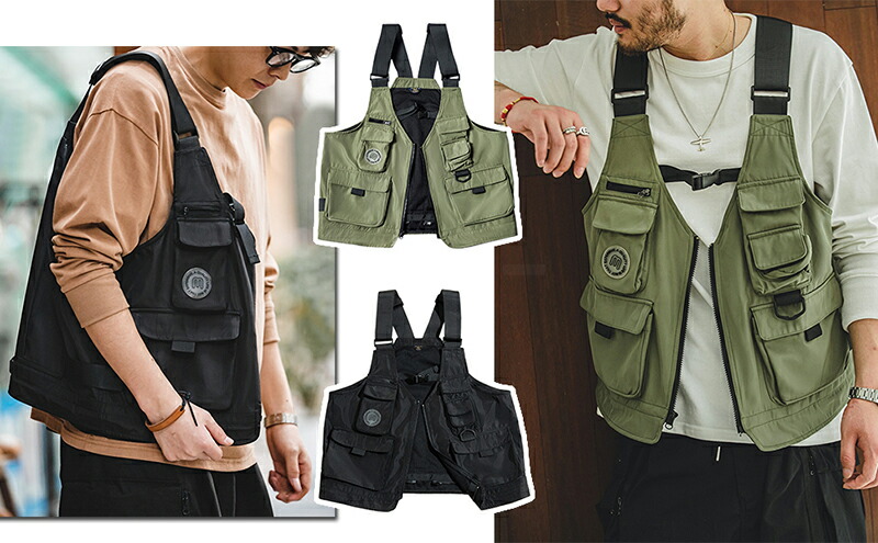 機能風 ベスト レトロ マルチポケット メンズファッション 豊富 アーミーグリーン ブラック