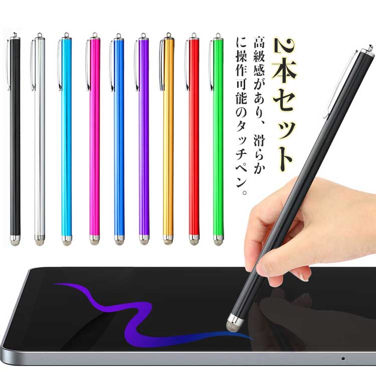 選べる2本セット タッチペン タブレッ ブラック シルバー レッド バラ ゴールド パープル グリーン ブルー スカイブルー グレー ブラック シルバー レッド バラ ゴールド パープル グリーン ブルー スカイブルー グレー