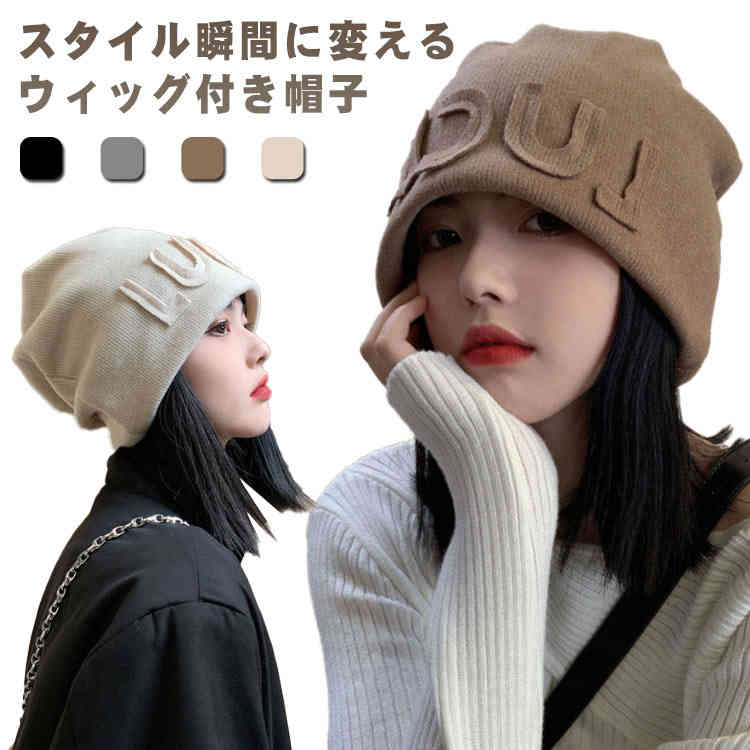 髪付き帽子 ウィッグ付き帽子 ニット帽 ウィッグ つけ毛 ポイントウィッグ 豊富 髪色(ブラック) 髪色(ダークブラウン) 髪色(ライトブラウン) 髪色(ブラックxブラウン) 帽子カラー(ブラウン) 帽子カラー(グレー) 帽子カラー(ブラック) 帽子カラー(オフホワイト)