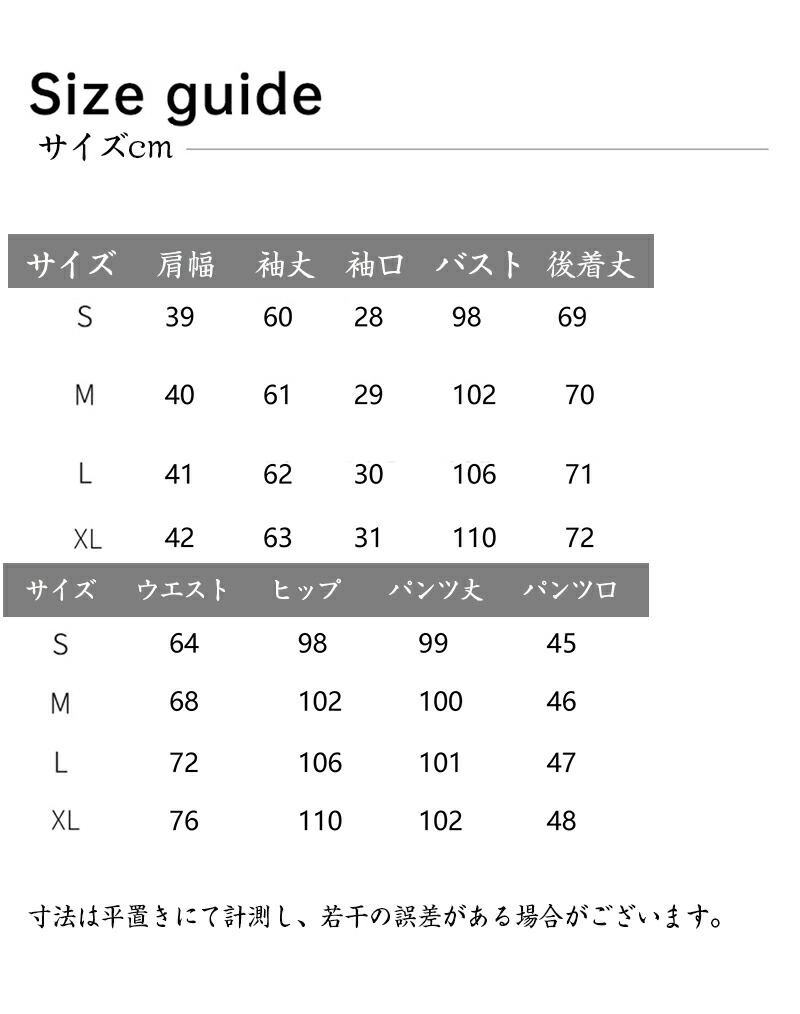 【セット内容】ジャケット+パンツの2点セット。