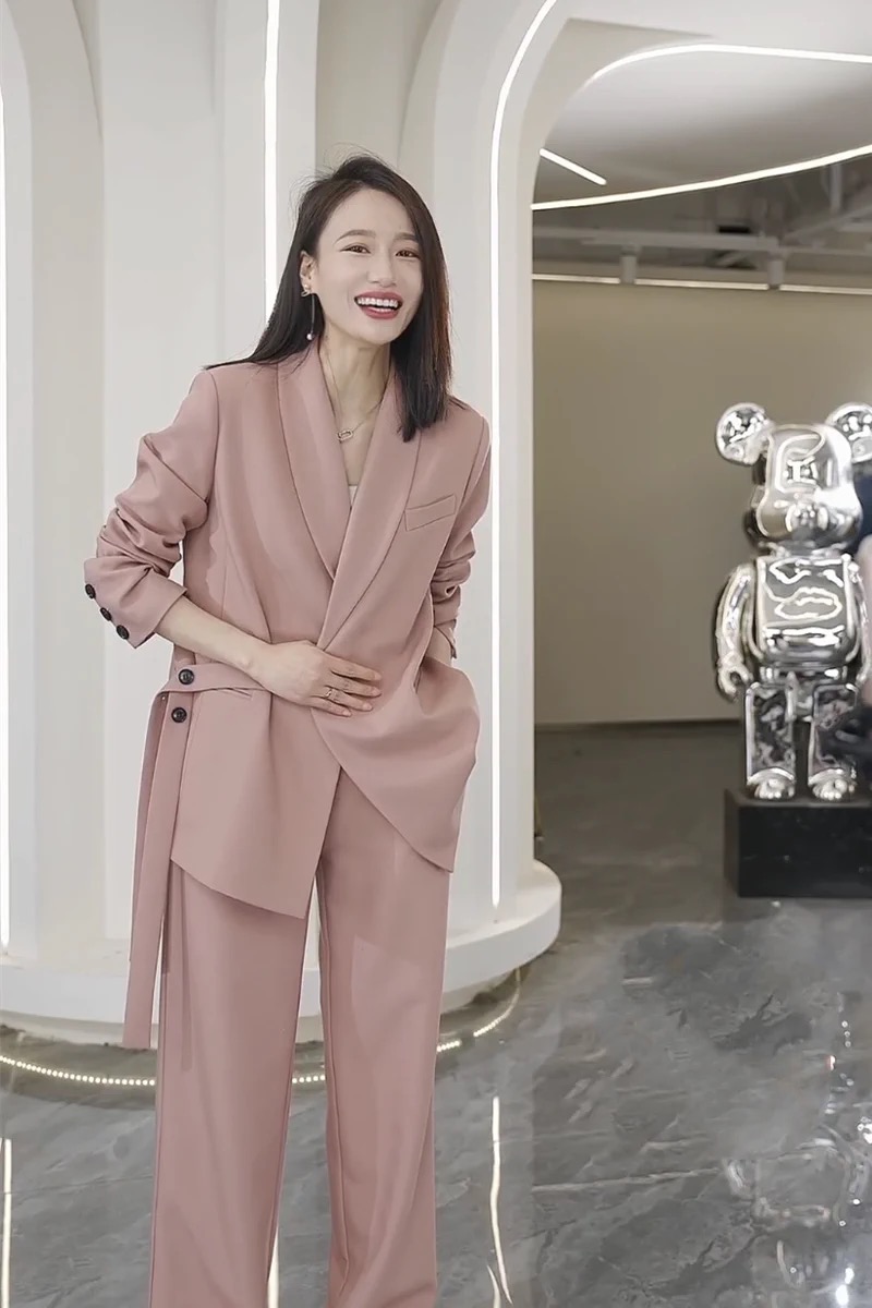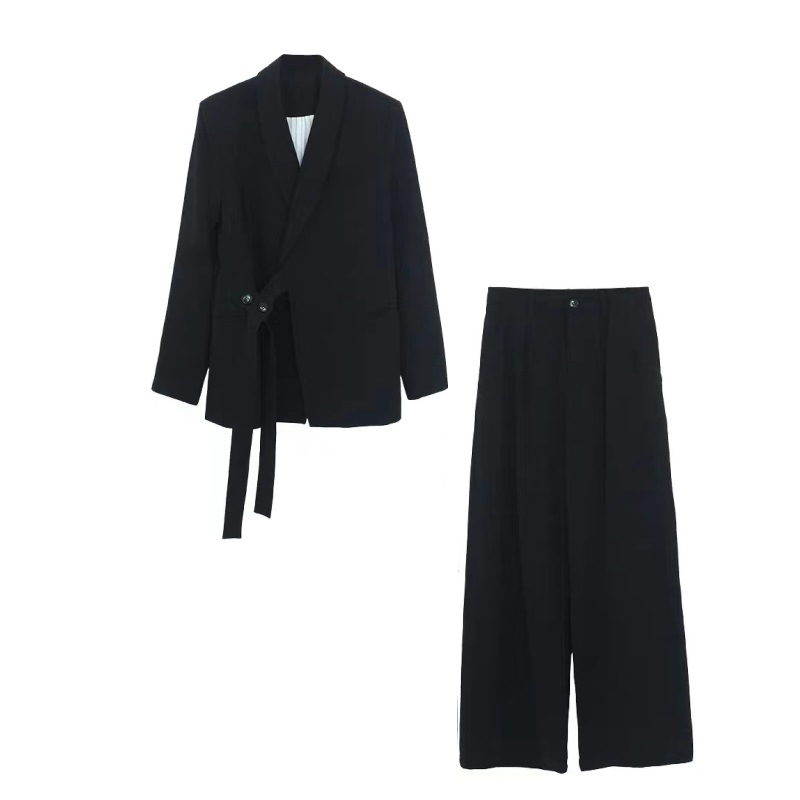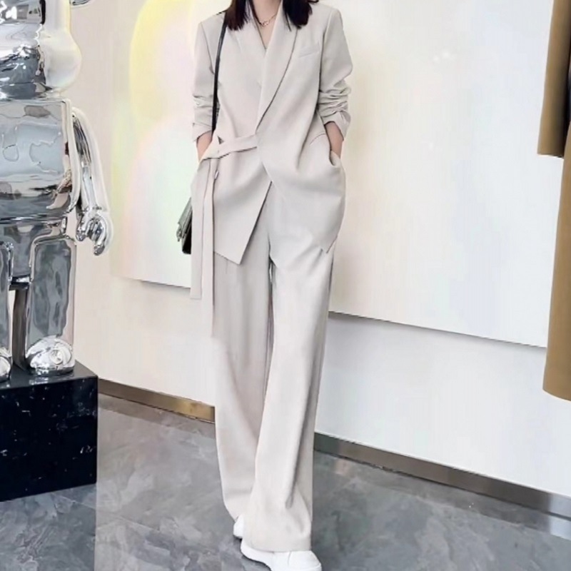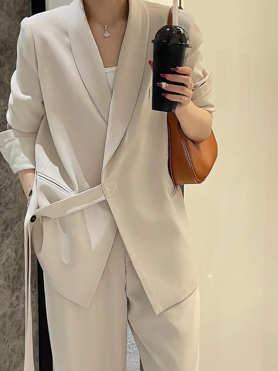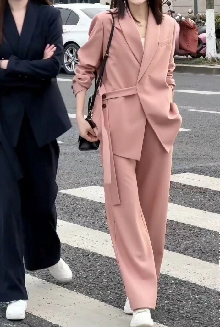 ワイドパンツスーツ この快適なレディースパンツスーツ 春夏、ポリエステルの素材とシンプルですっきりとしたデザインで、洗練された高級感があり、スマートでどこかお洒落で、カッコいい雰囲気を出してくれます。エレガントラグジュアリーな雰囲気を醸して、お勧めの一着となります。