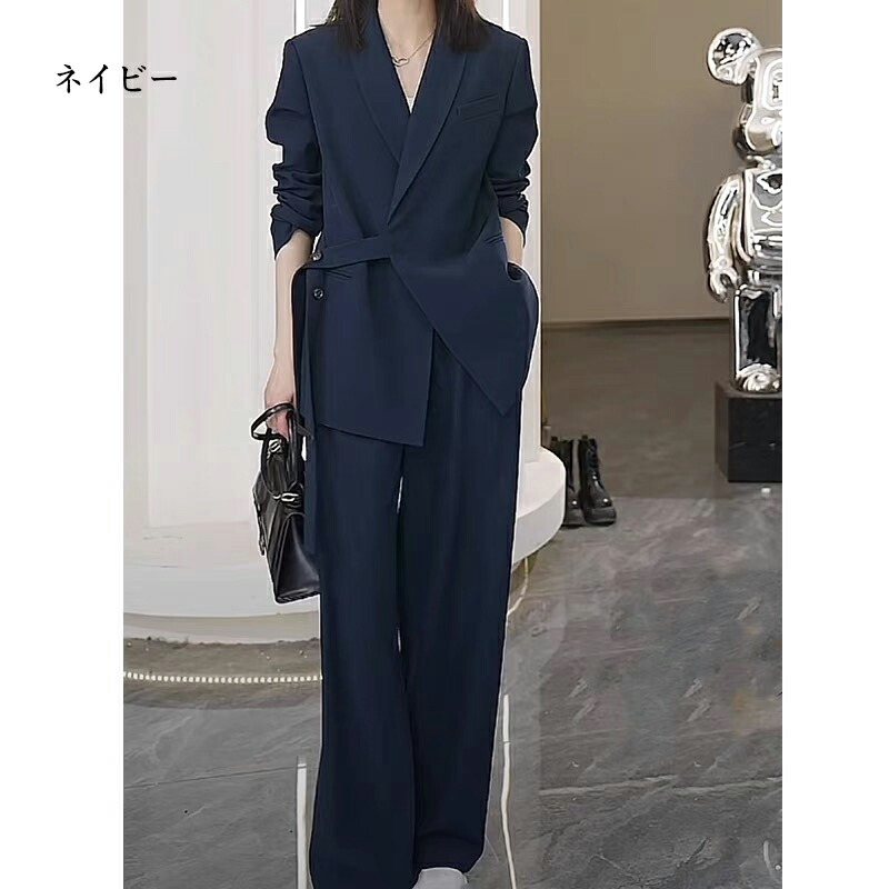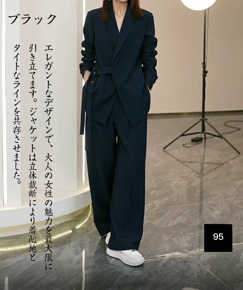 ワイドパンツスーツ パンツスーツ レデ ブラック2点セット ネイビー2点セット ピンク2点セット ベージュ2点セット ダークグレー2点セット S M L XL
