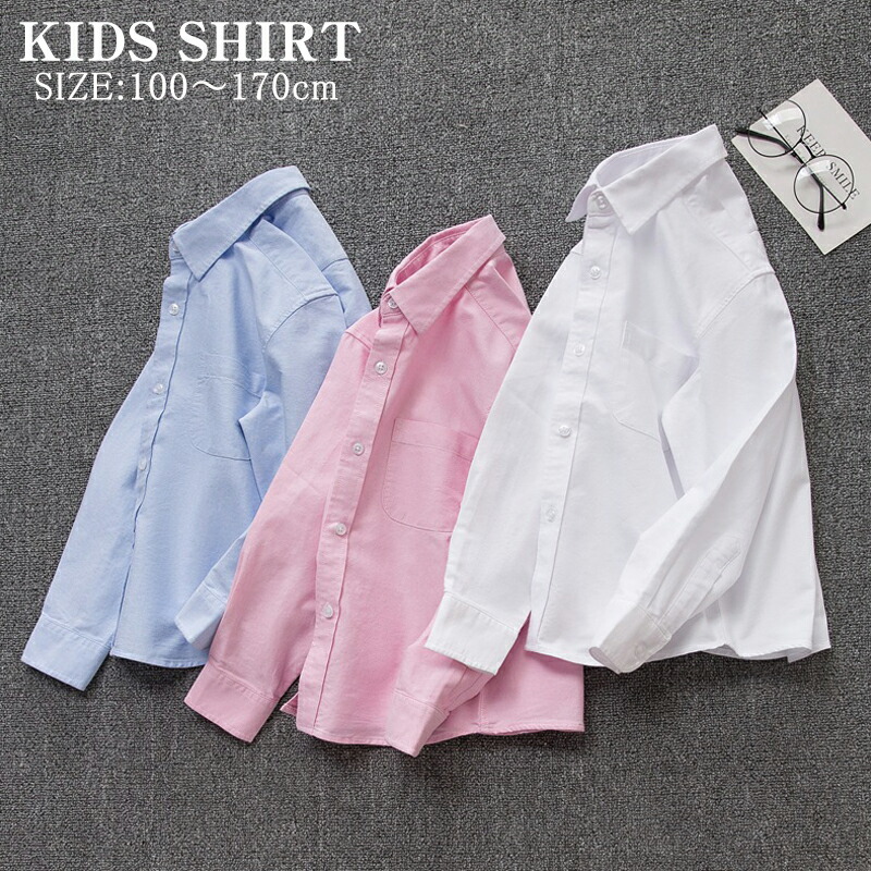 キッズ フォーマル シャツ 長袖 子供 キッズ トップス シャツ ブラウス 続々入荷中 ホワイト スカイブルー ピンク 110 120 130 140 150 160 170
