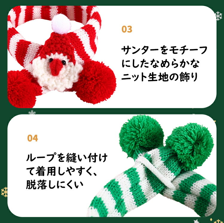 マフラー ペット ニット クリスマス 犬 猫 ストール ネコ ペット用マフラー ニット編み 猫用 犬用 スカーフ 手編み 可愛い プレゼント クリスマス感 クリスマスムード 飾り ループ イ 小型犬