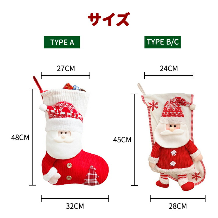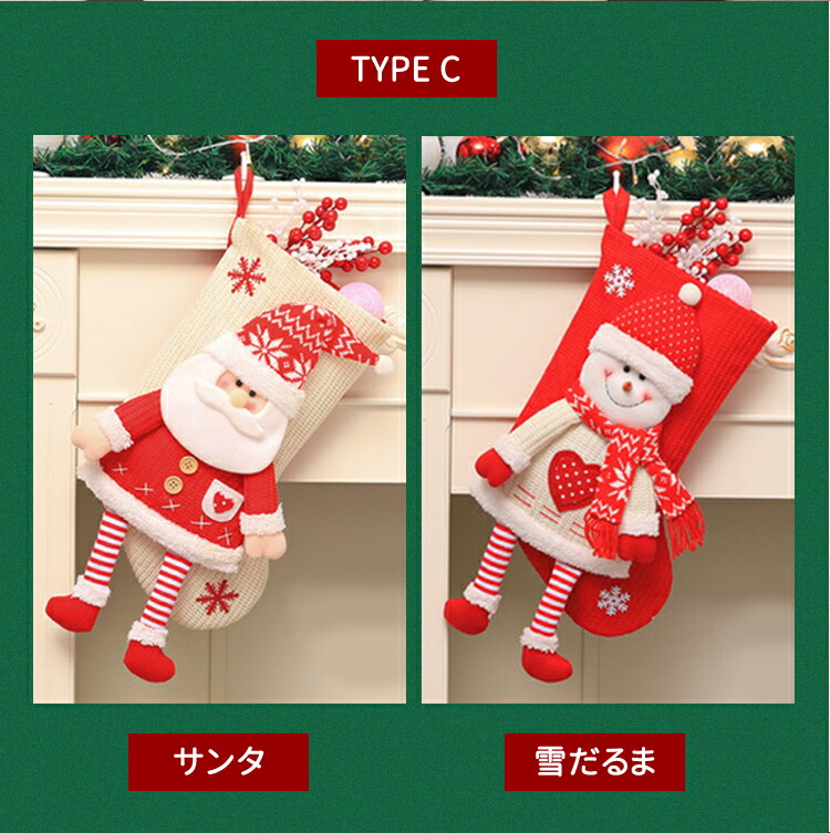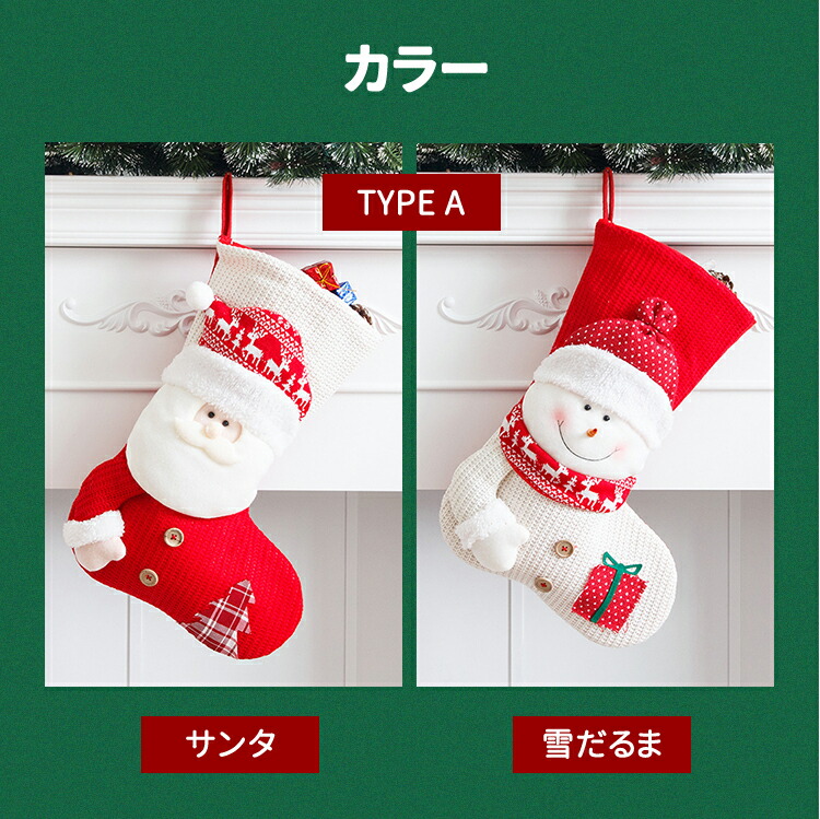クリスマス 靴下 サンタ プレゼント タイプA-サンタ タイプA-雪だるま タイプB-サンタ タイプB-雪だるま タイプC-サンタ タイプC-雪だるま