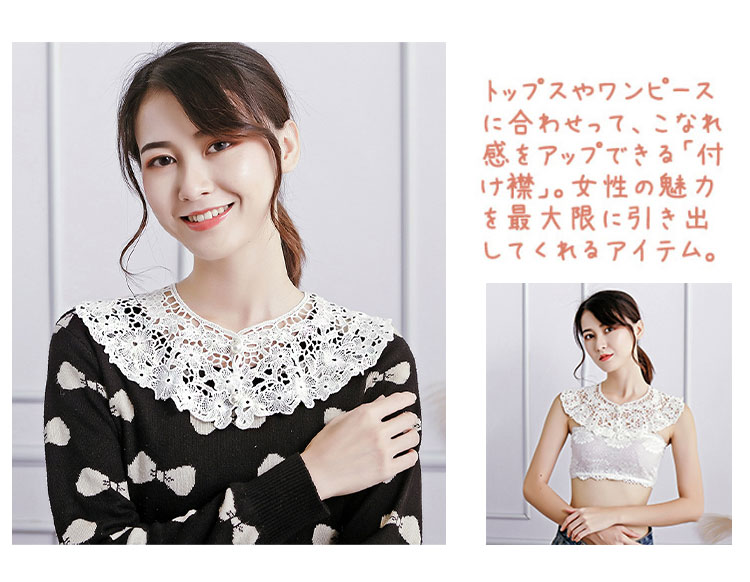 つけ襟 レース 付け襟 レディース 襟 フェイク襟 重ね着 レイヤード 上品 可愛い オシャレ 女子高生OL 春 秋 冬 秋冬 コーデ 大人 白 ホワイト ブラウス付け襟 襟元
