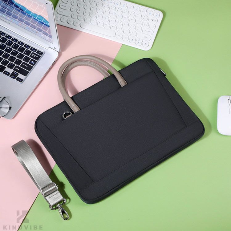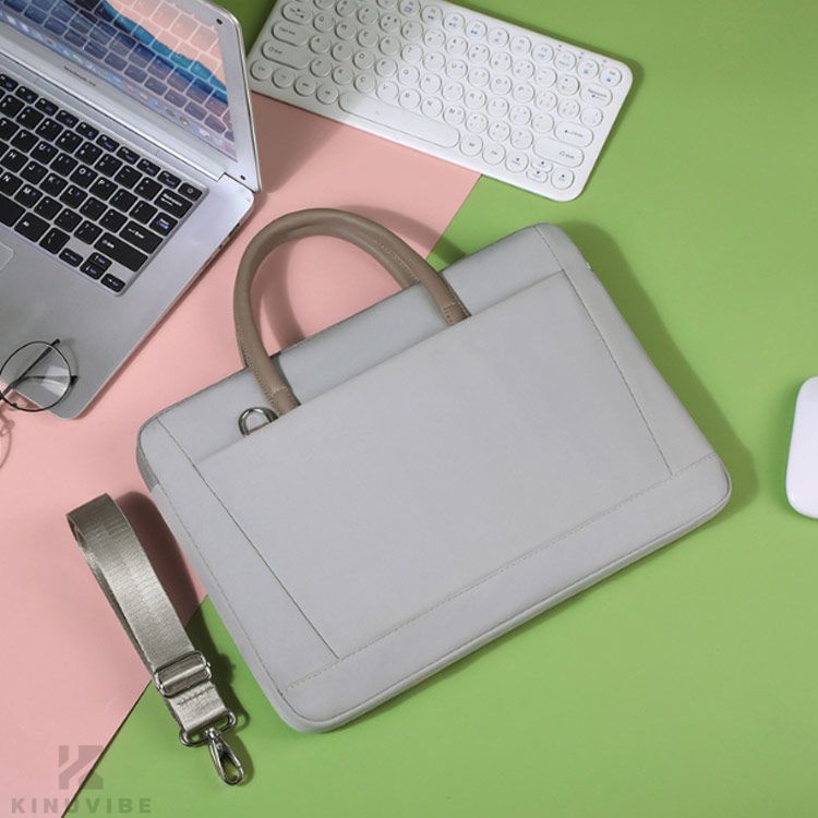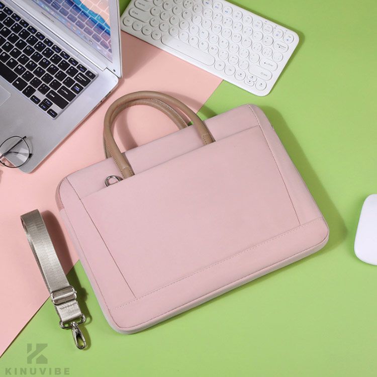 3Way【大人可愛いPCケース】 13-16.1インチ対応バッグの前側にはワイドポケットがあり、そこには小物を整理するための仕切りも付いています。内側は柔らかな緩衝材が施され、大切なPCを優しく包み込みます。さらに、キャリーバッグにも簡単に取り付けられる装着ベルトが付いており、出張や旅行にも便利です。このケースは防水性に優れており、傷にも強いので安心してお使いいただけます。ダブルファスナーは開閉がスムーズで、忙しい日常でもストレスなく利用できます。また、オシャレな合皮の取っ手が付いており、持ち運びもおしゃれに演出します。さらに、取り外し可能な肩掛けバンドも付属しており、長さも調整可能です。これで、お好みのスタイルで持ち運びが可能です。サイズは13-13.3インチ、14-14.6インチ、15-16.1インチの3種類をご用意しており、カラーはブラック、グリーン、グレー、ピンク、ブルー、ベージュの6色からお選びいただけます。自分らしいスタイルで、快適なPCライフをお楽しみください。