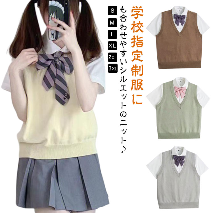 夏用 ベスト スクール 女子 夏 学生 学生服 その他 特集 イエロー ベージュ グレー グリーン ブラウン ネイビー S M L XL 2XL 3XL