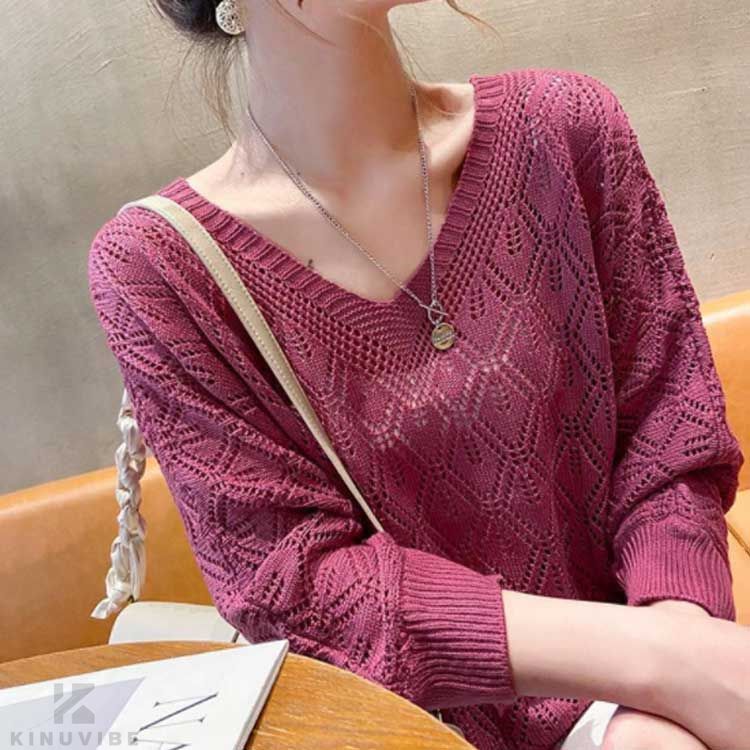 透かし編み トップス ニット 長袖 レ レディースファッション 豊富な品揃え ネイビー レッド ベージュ ダークグレー S M L XL 2XL