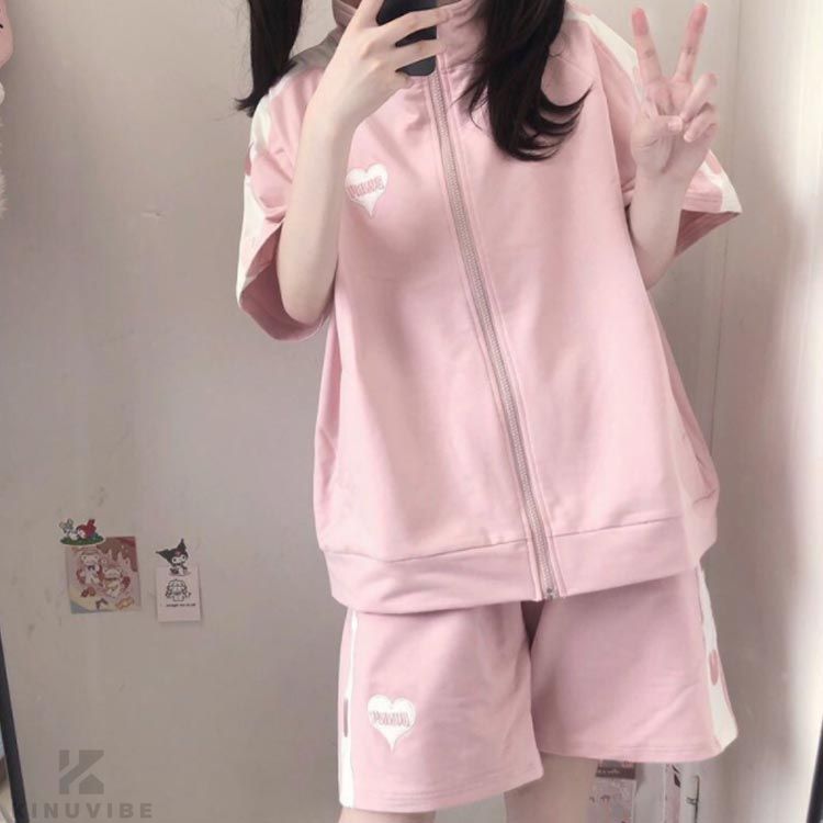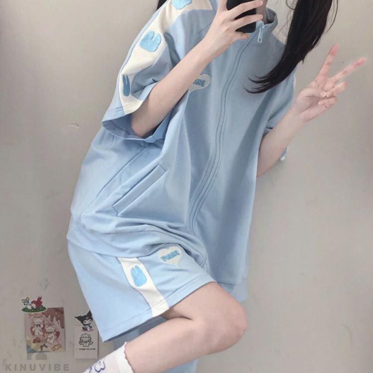 2点セットトップス かわいい ジャージ レディースファッション 人気 ブルー ピンク S M L XL