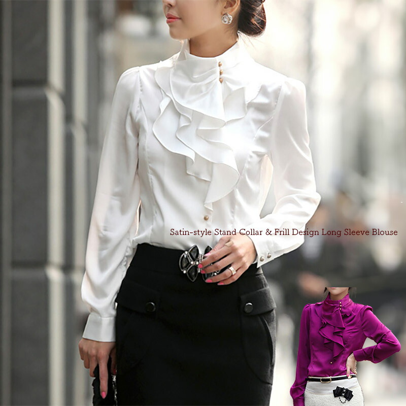 ◆フリル 立ち襟 スタンドカラー フォーマル 長袖 ブラウス ◆