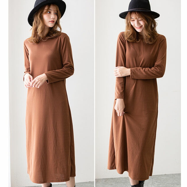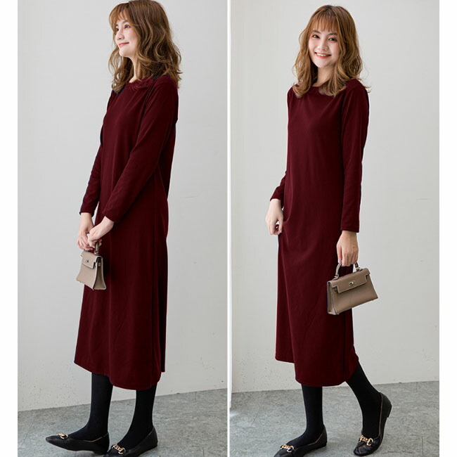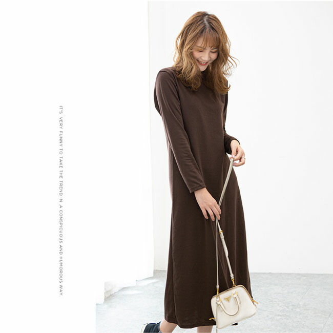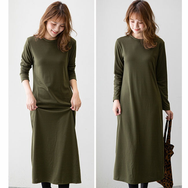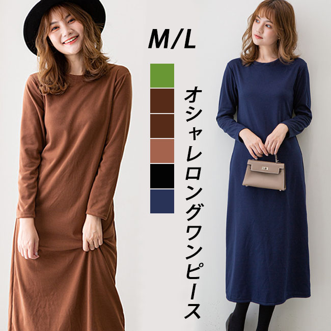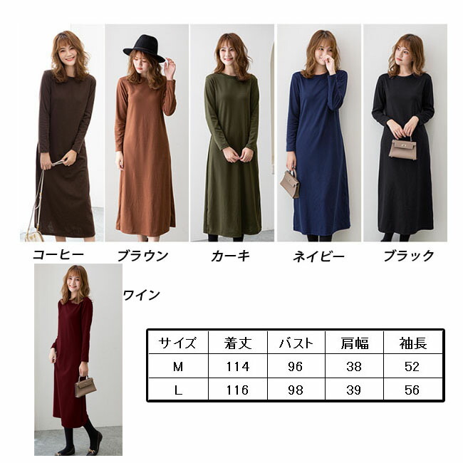 ロングワンピース ワンピース 裏起毛な ワンピース 新登場! ワイン カーキ ネイビー ブラウン コーヒー ブラック M L