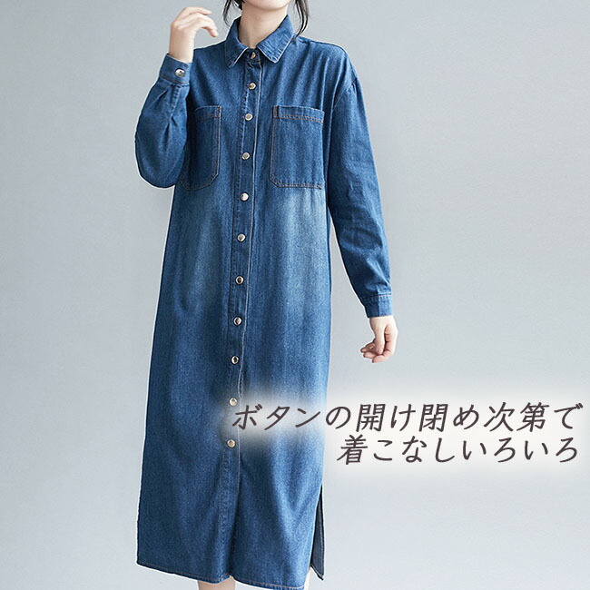 シャツ ワンピース 長袖 シャツワンピース ロング
