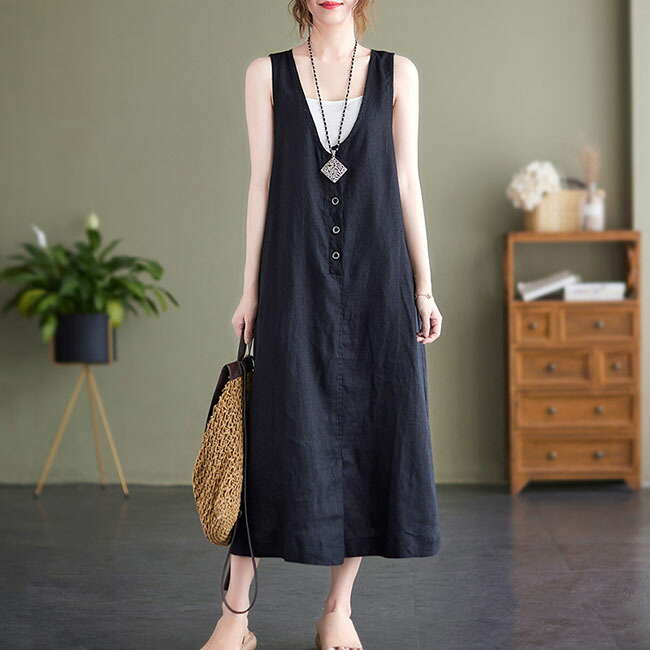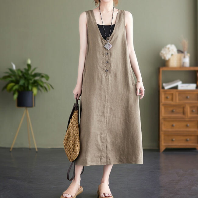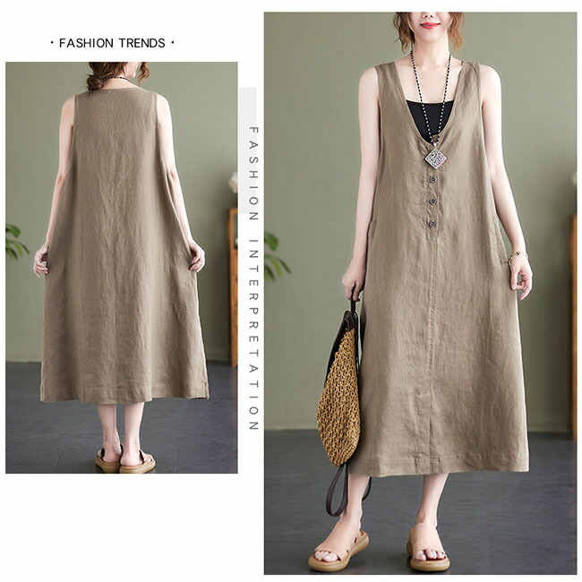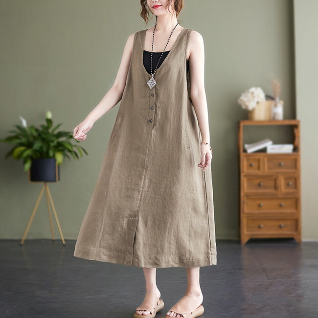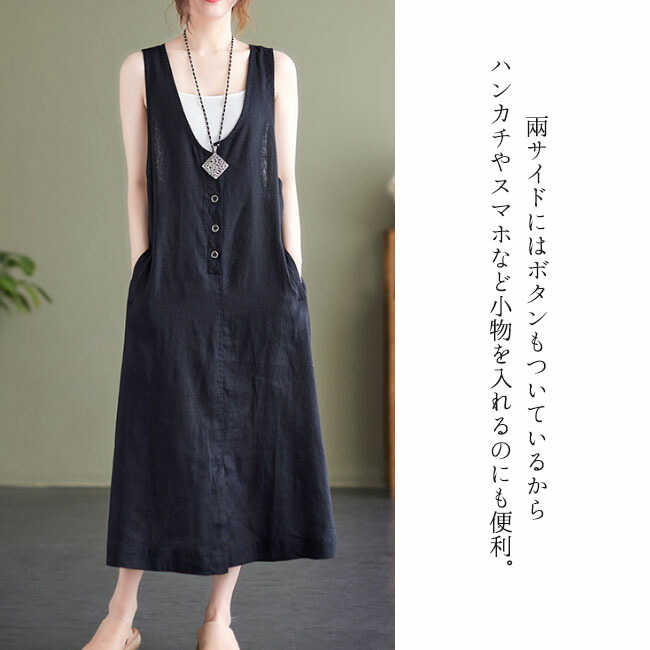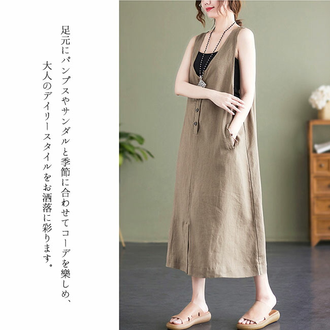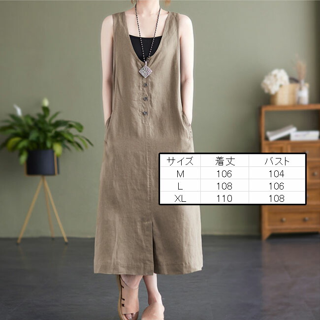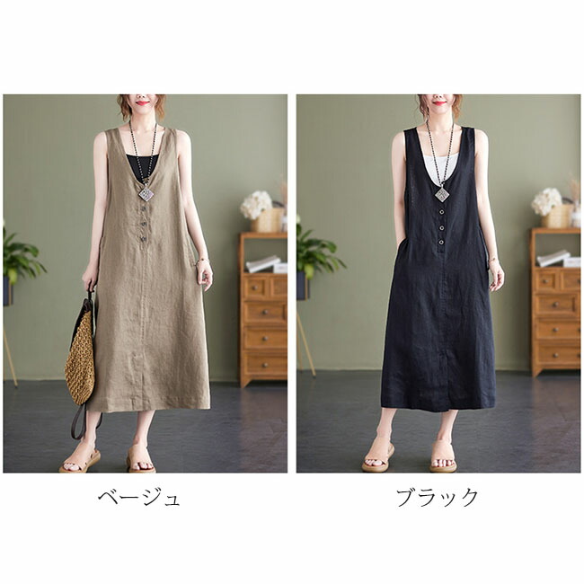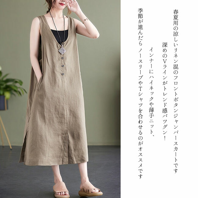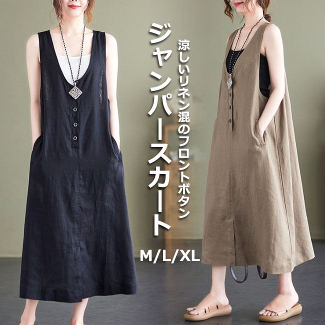ジャンパースカート 大人 春 夏 vネ ベージュ ブラック M L XL