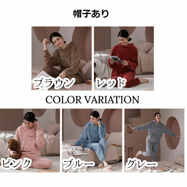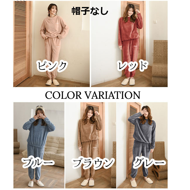 ルームウェア あったか もこもこ パジ レディース ナイトウェア ルームウェア ルームウェア 上下セット 特集 帽子なし 帽子あり ピンク レッド ブルー ブラウン グレー