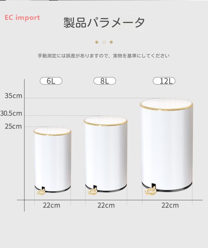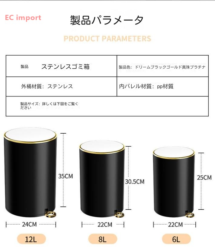 ゴミ箱 ステンレス鋼 足踏み式 リビン 6L 8L 12L ブラック ホワイト