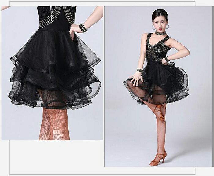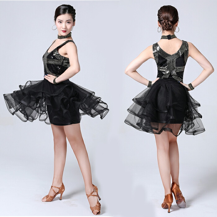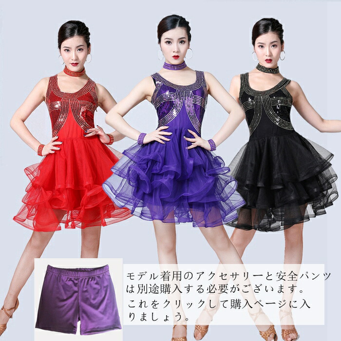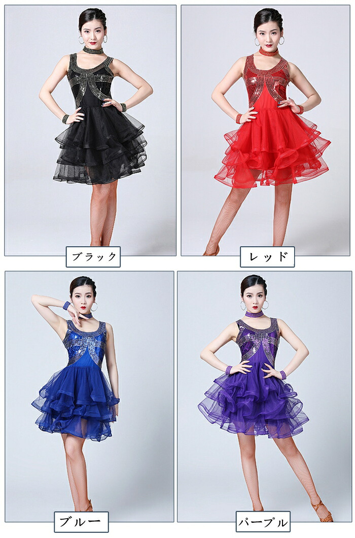 新作 レディース ダンス衣装 キャミソ ワンピース 新登場! ブラック ブルー レッド パープル M L XL