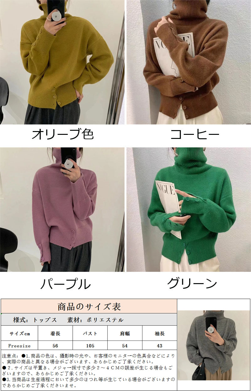 ハイネック タートルネック ニット ト レディースファッション 早い者勝ち クリーミーホワイト ブラウン グレー ブラック オリーブ色 コーヒー パープル グリーン