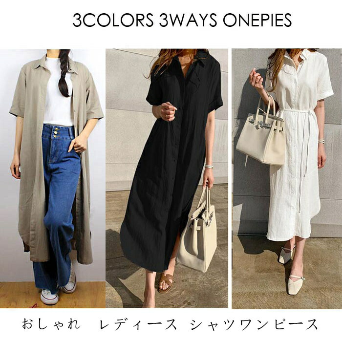 春夏 新作 3ways半袖 シャツ ワ ワンピース 超目玉商品 ホワイト コーヒー ブラック