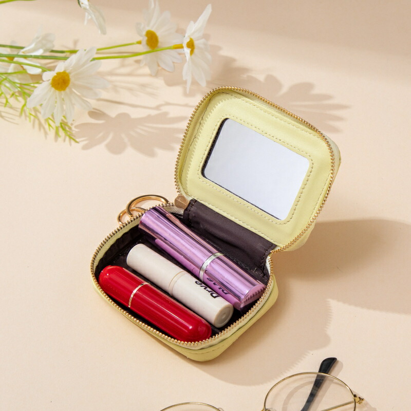 リップケース ミラー付き ケース 小さめ 口紅ケース メイクポーチ ポーチ アクセサリーケース 小物入れ 化粧品ポーチ コスメ収納