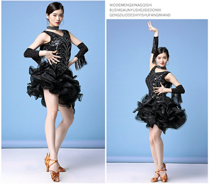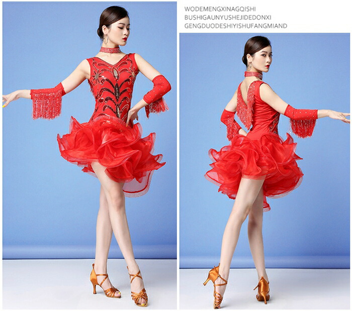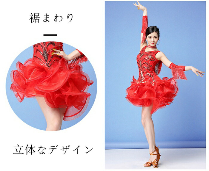 新作 レディースダンス衣装 女性 大人 ワンピース 新登場! ブラック レッド M L XL