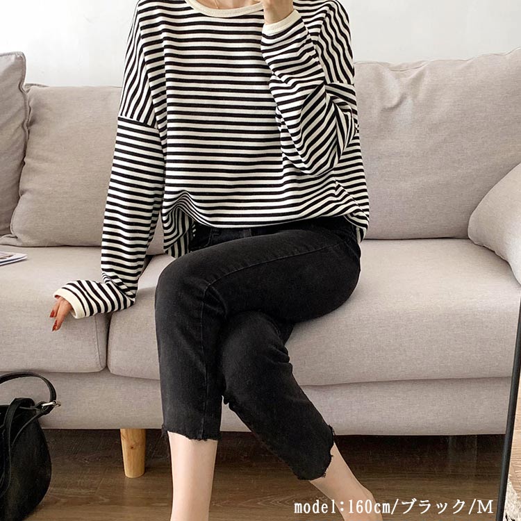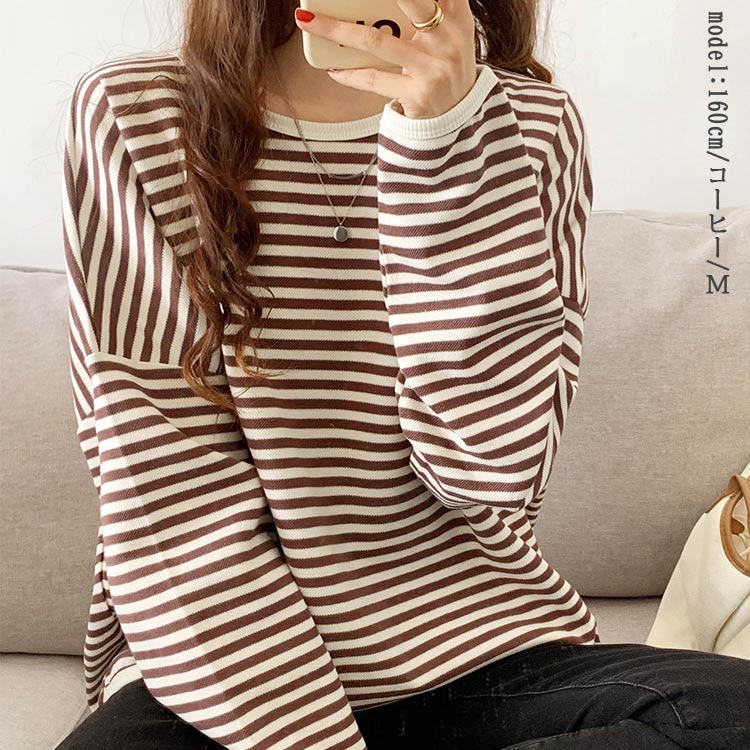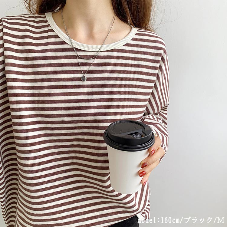 ボーダーロング Tシャツ レディース トップス Tシャツ カットソー 通販 ブルー ブラック コーヒー S M L