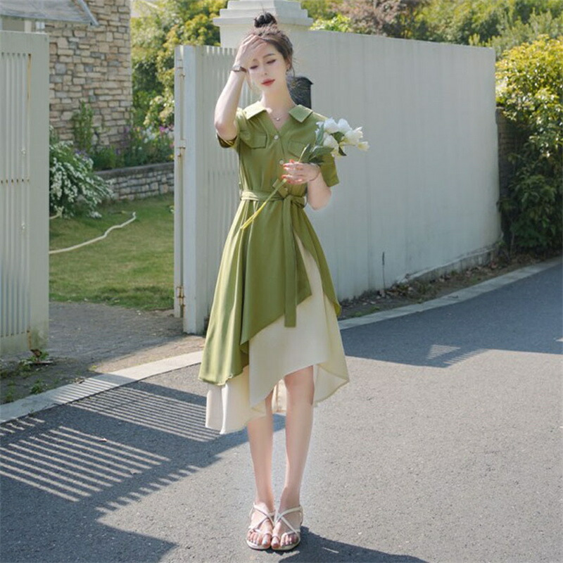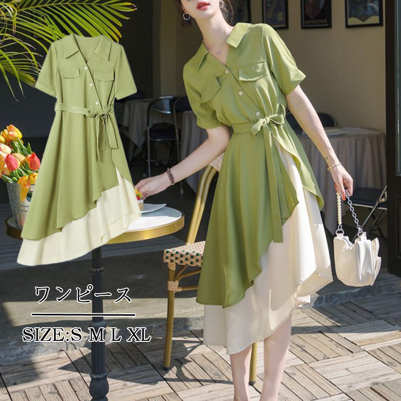 シャツワンピース 春 夏 半袖ワンピー レディースファッション 新登場! S M L XL XXL