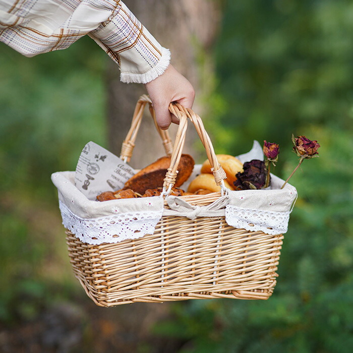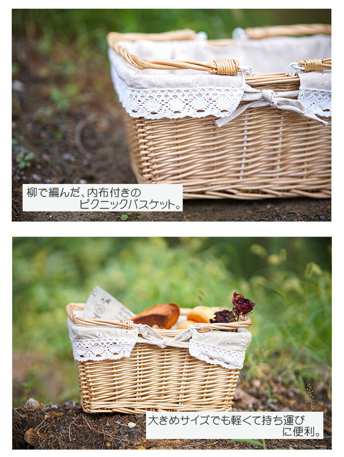 ピクニックバスケット かごバスケット 小花柄内布 チェック柄内布 S M L XL