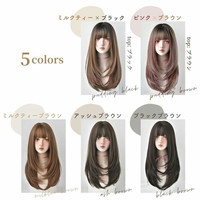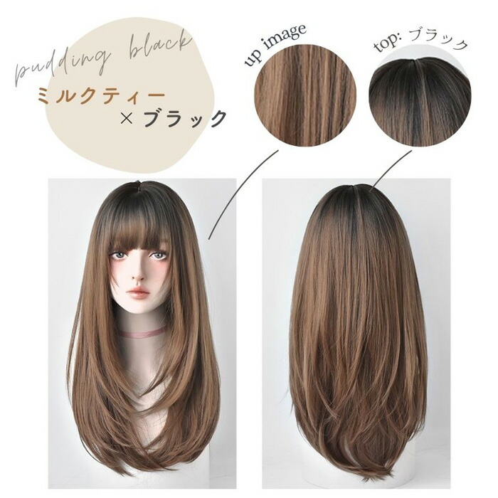 ウィッグ ロング レディース 自然 バ ウィッグ つけ毛 フルウィッグ 新登場! ピンク×ブラウン ミルクティー×ブラック ミルクティーブラウン ブラックブラウン アッシュブラウン