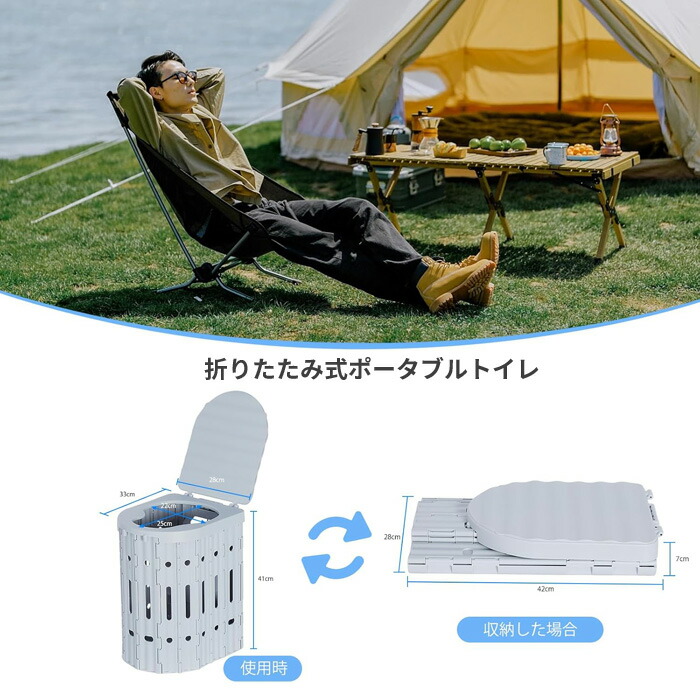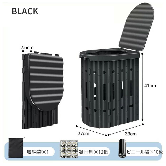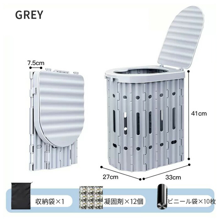 簡易トイレ ポータブルトイレ 折り畳み ブラック グレー