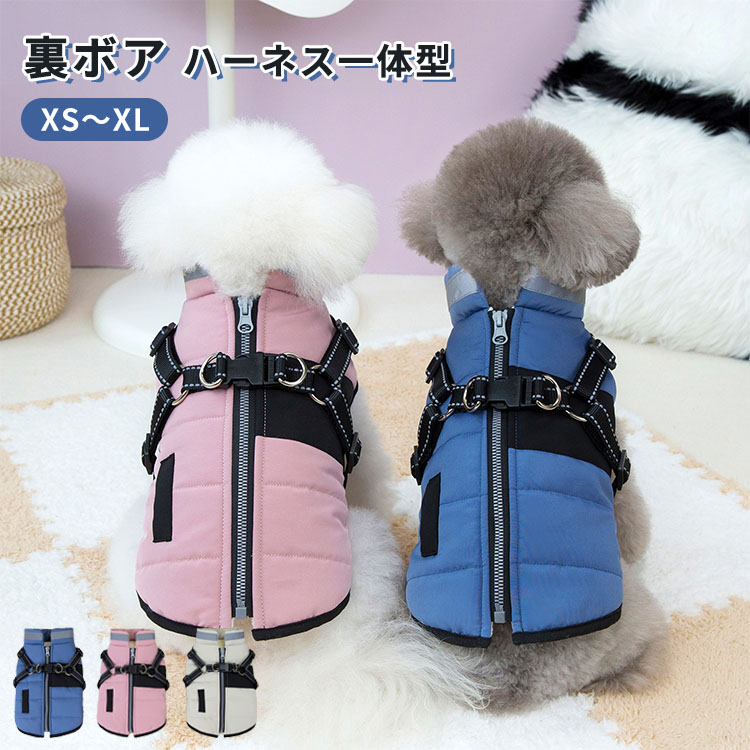 ハーネス一体型 ジャケット 犬服 背開 犬用品 ドッグウェア ジャケット 早い者勝ち ベージュ ピンク ブルー XS S M L XL