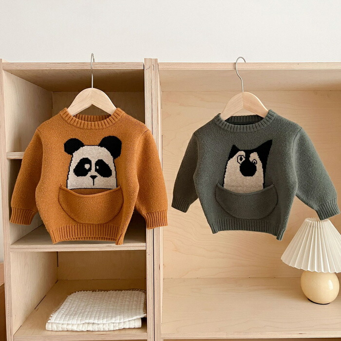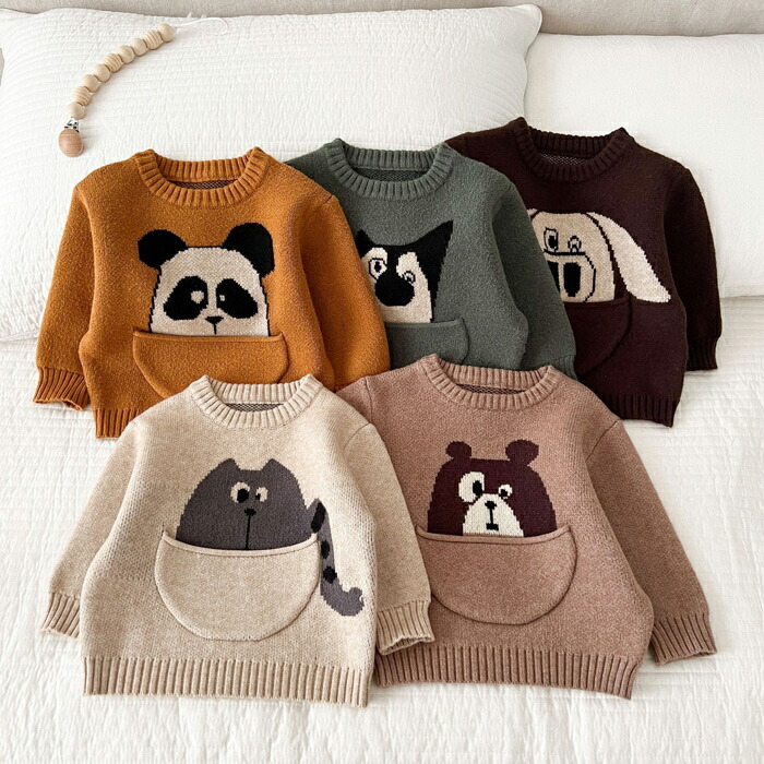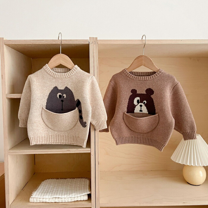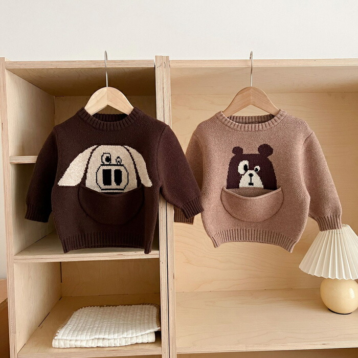 \着後レビューでおまけ付/ くま ネコ ベビー ベビー服 ファッション トップス セーター 続々入荷中 いぬ くまA ネコ 豚 くまB 66cm 73cm 80cm 90cm 100cm