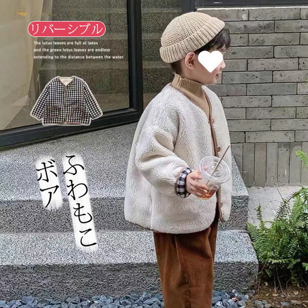 リバーシブルアウター ノーカラーボアジ キッズ ベビー マタニティ 早い者勝ち アイボリー ブラウン 80cm 90cm 100cm 110cm 120cm 130cm