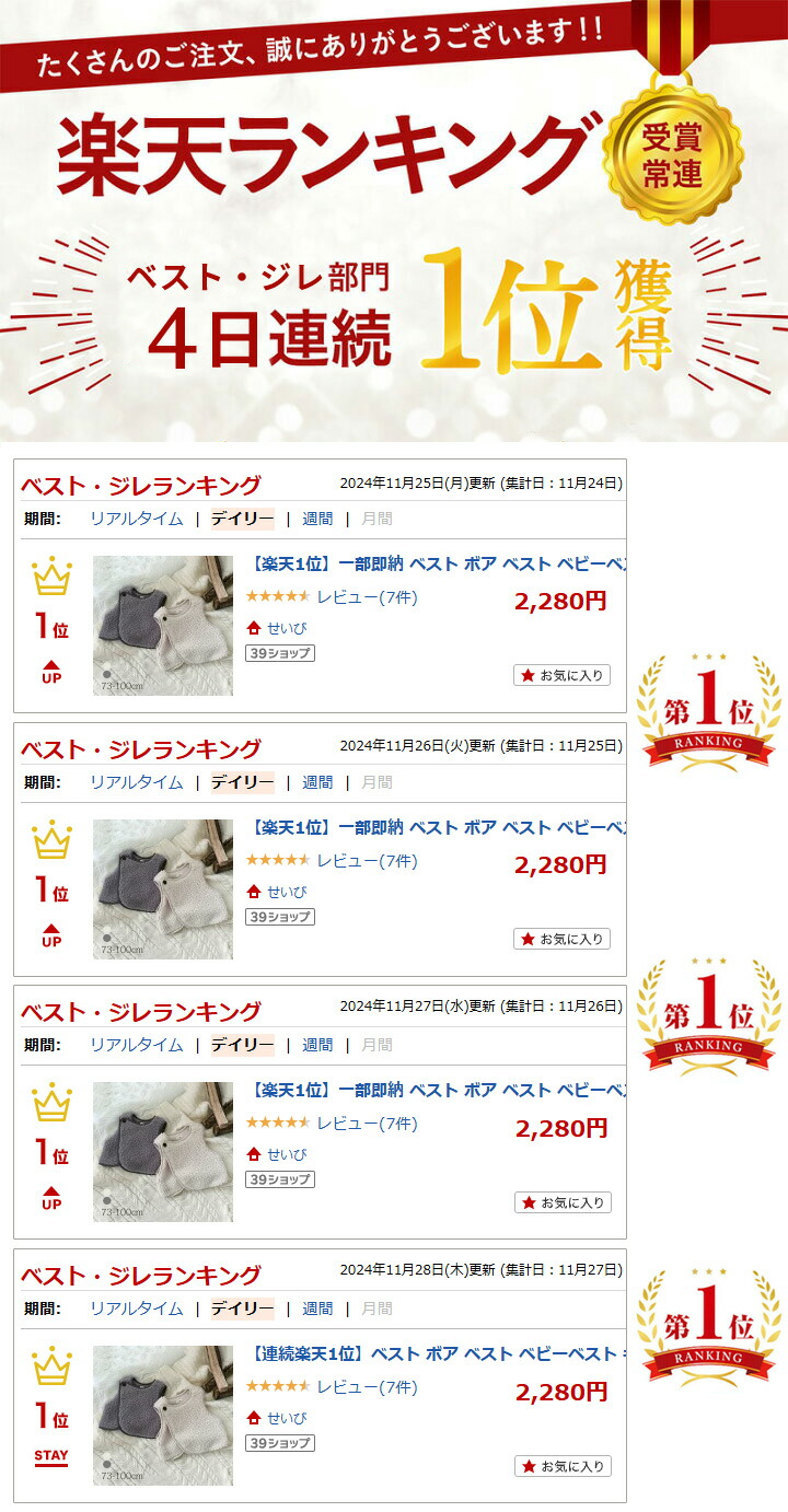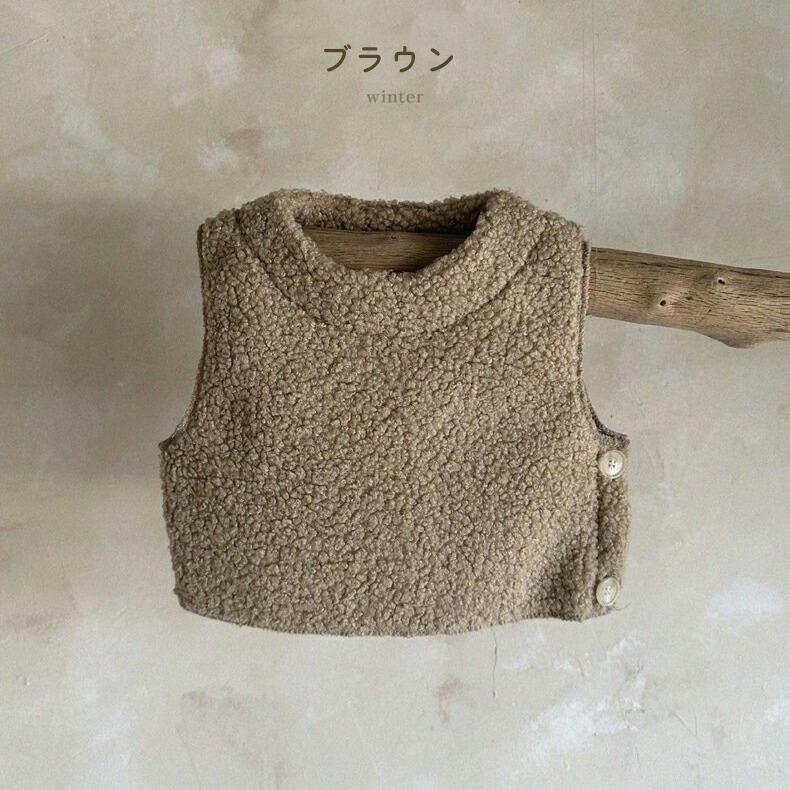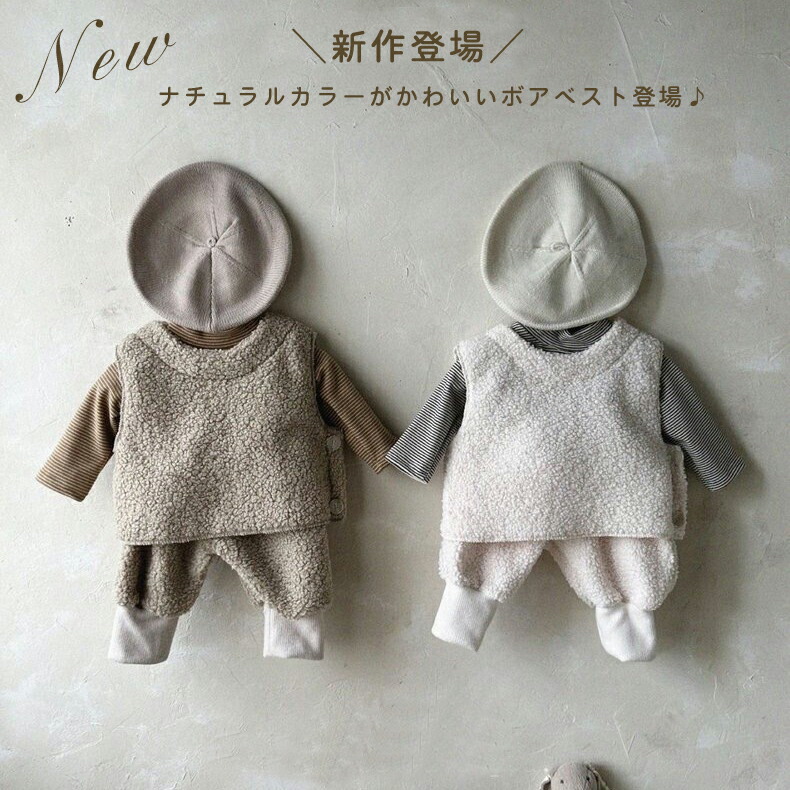 ベスト ボア ベビーベスト キッズベス キッズ ベビー マタニティ 続々登場 グレー アイボリー ブラウン カーキ 73cm 80cm 90cm 100cm