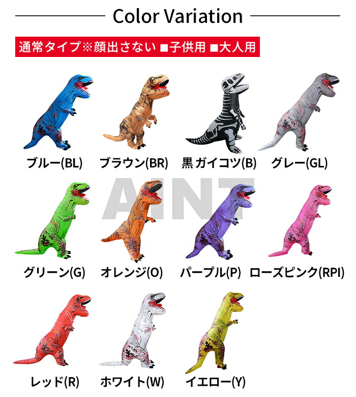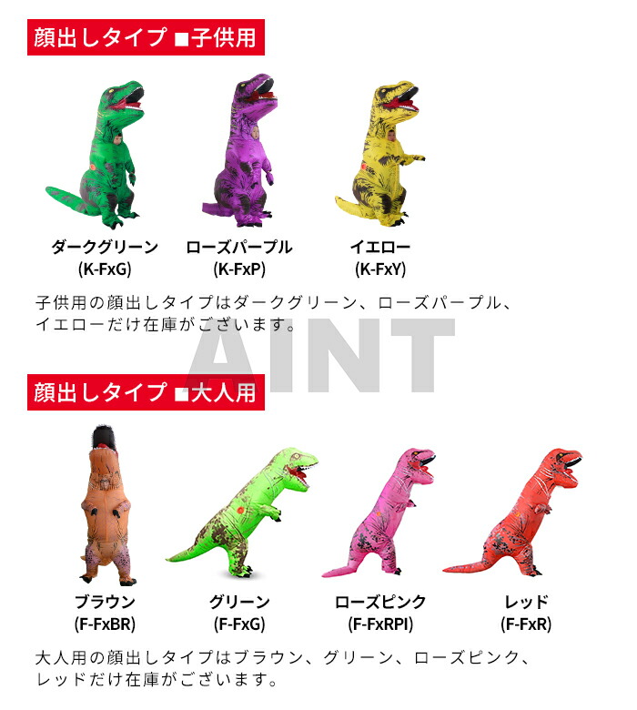 ティラノサウルス 顔出し 恐竜コスプレ コスプレ 変装 仮装 着ぐるみ 続々入荷中 子供用(120-150cm) 大人用(150-190cm) ブラウン(顔出し) グリーン(顔出し) ローズピンク(顔出し) レッド(顔出し) ダークグリーン(顔出し) ローズパープル(顔出し) イエロー(顔出し) ブルー(人気) ブラウン(人気) 黒・ガイコツ(NEW) グレー グリーン(人気) オレンジ パープル ローズピンク レッド(人気) ホワイト イエロー