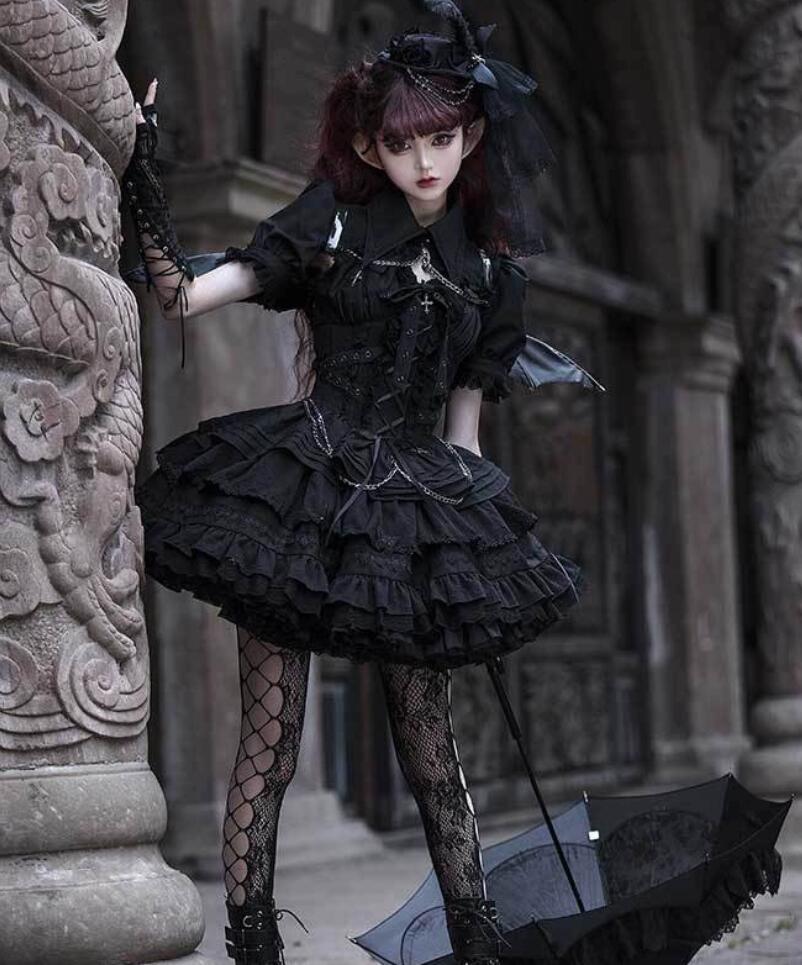LOLITA ロリータ 悪魔の契約黒白 ワンピース 新登場! jsk jsk+コート jsk+パニエ jsk+パニエ+コート S M L XL