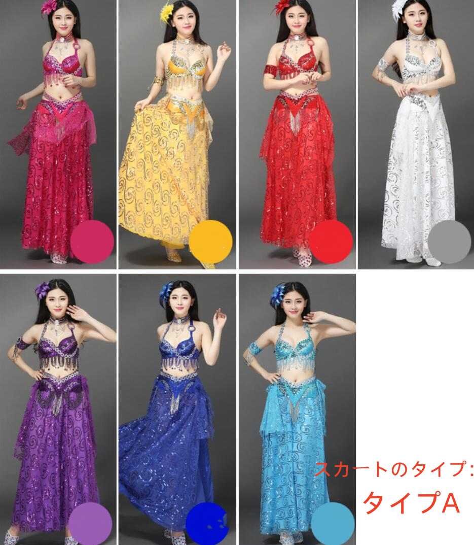 6色 S M L 上下セット+ 腰巻き 体操 ダンス ベリーダンス 衣装セット 通販 S M L ホワイト 黄色 ローズ ダークブルー ライトブルー パープル レッド