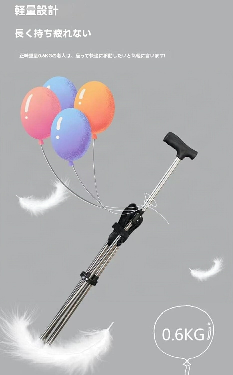 折りたたみ式杖付き椅子 アルミ製 登山杖 歩行補助器 シート付き 休憩可能 荷重130kg 三脚設計 軽量で携帯性があり 収納が便利 折り畳み杖 杖椅子 座れる杖 座れるステッキ 折り畳み式ステッキ