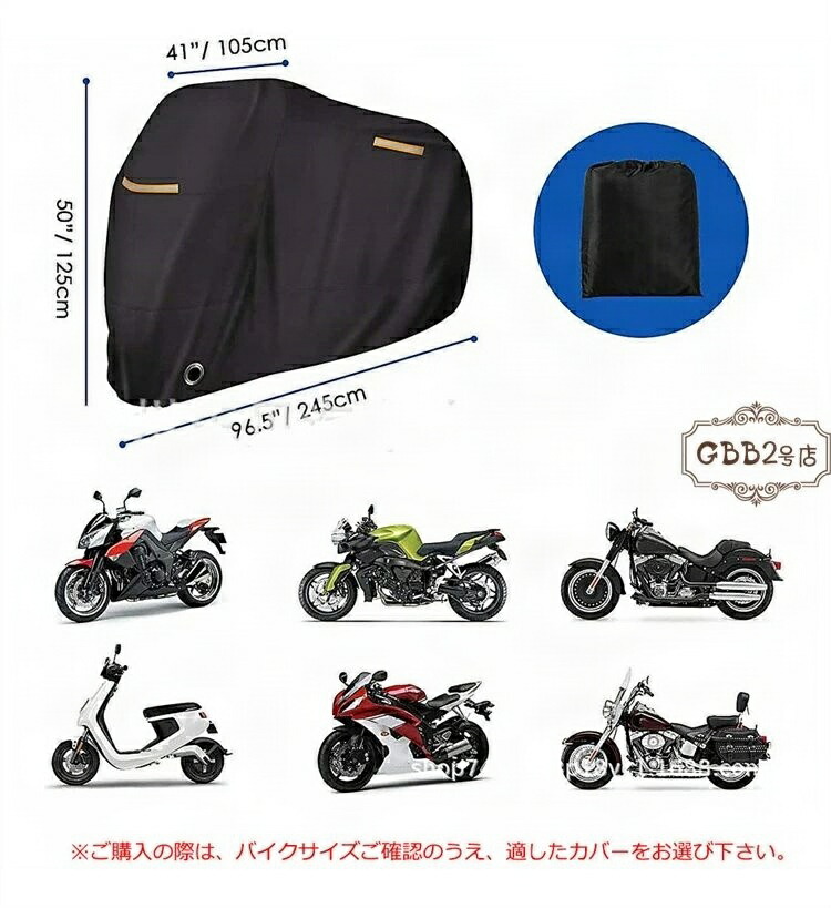 バイクカバー 厚手 耐熱 防水 6サイ タイプ1 タイプ2 タイプ3 M L XL XXL XXXL XXXXL