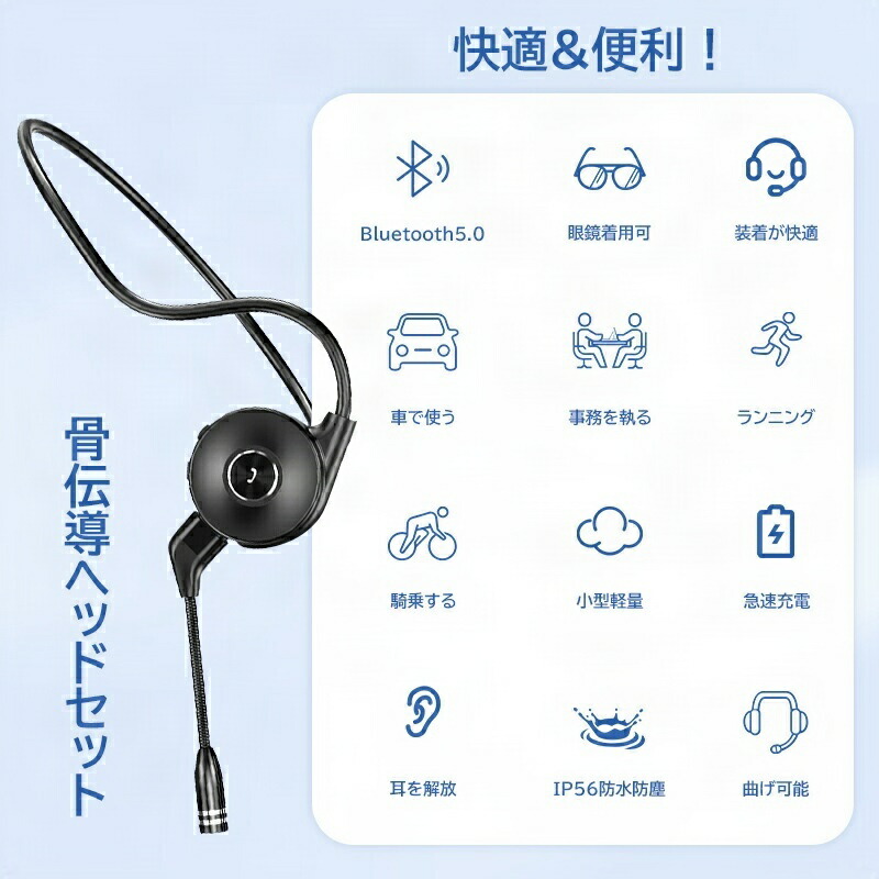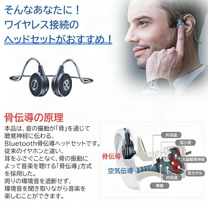 骨伝導 ヘッドホン Bluetooth ブラック レッド ミント ピンク