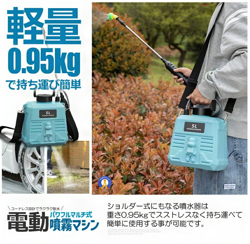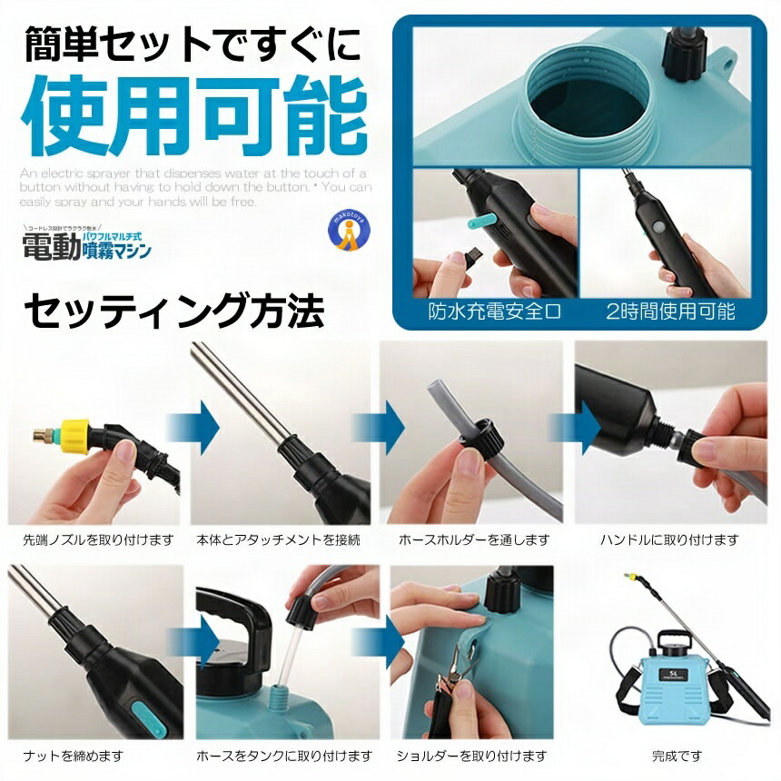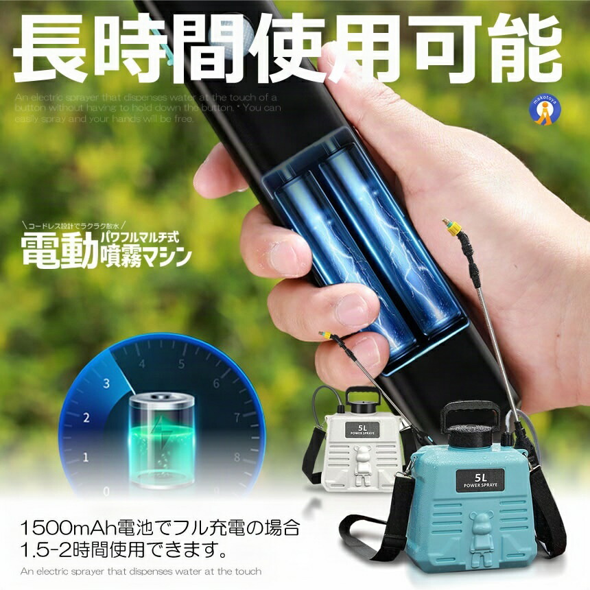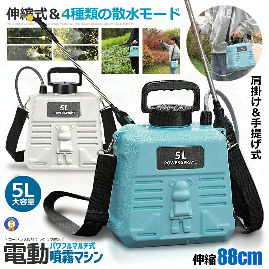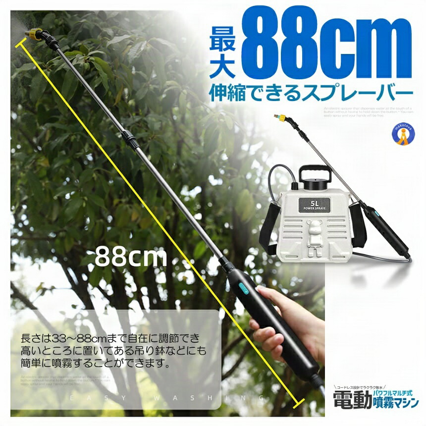 噴霧器 電動 充電式 88cm 伸縮式 ブルー ホワイト