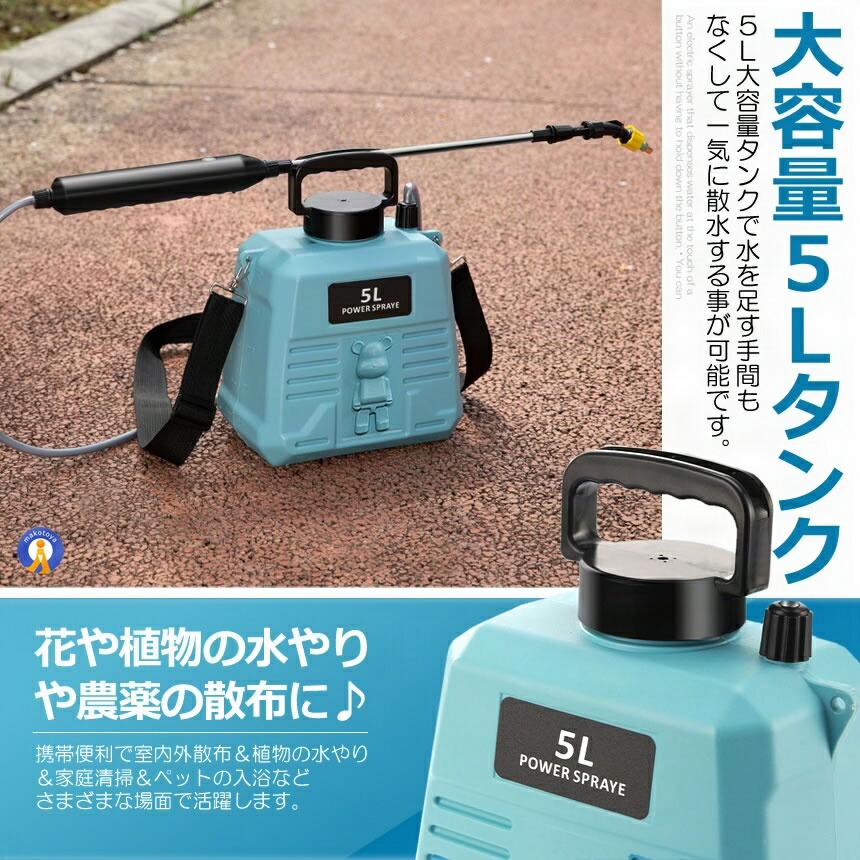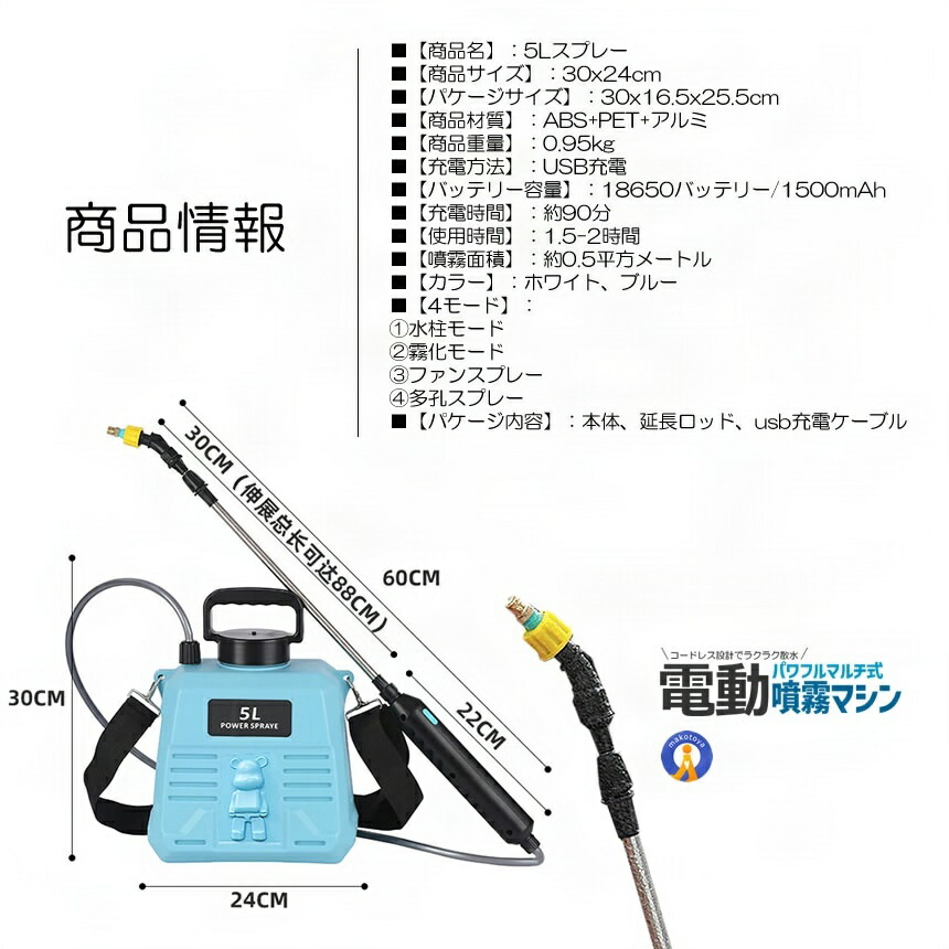 噴霧器 電動 充電式 88cm 伸縮式 ブルー ホワイト