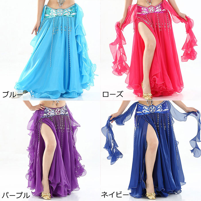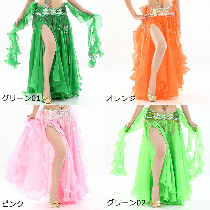 ベリーダンス 衣装 レディース スカー スポーツ アウトドア 人気 ホワイト イエロー ブラック レッド ローズ ネイビー ブルー パープル ピンク オレンジ グリーン01 グリーン02 ライトパープル スカート単品 スカート+ベルト