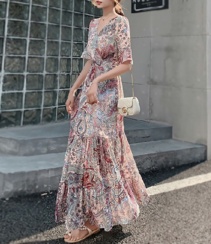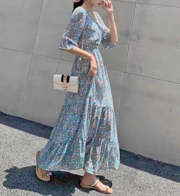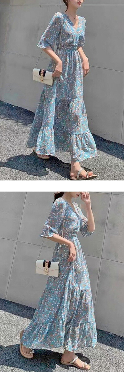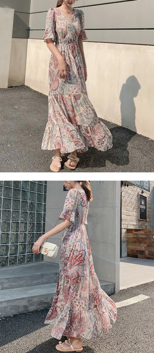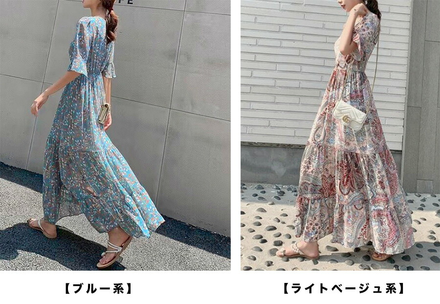 レディース ワンピース リゾート ロン ドレス 超目玉商品 ブルー系 ライトベージュ系 M L XL XXL