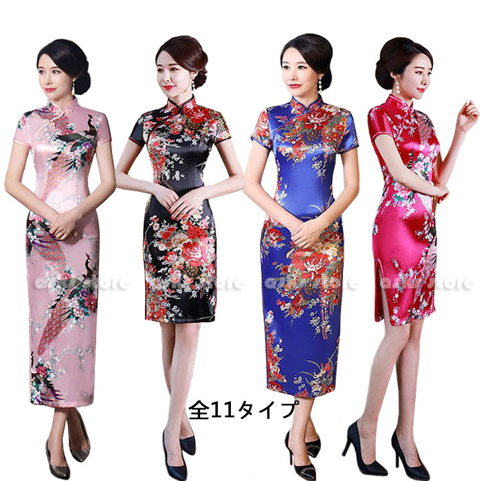 チャイナドレス 全12色 コスプレ 膝 ドレス 続々登場 01 02 03 04 05 06 07 08 09 10 11 12 ロング丈 膝丈
